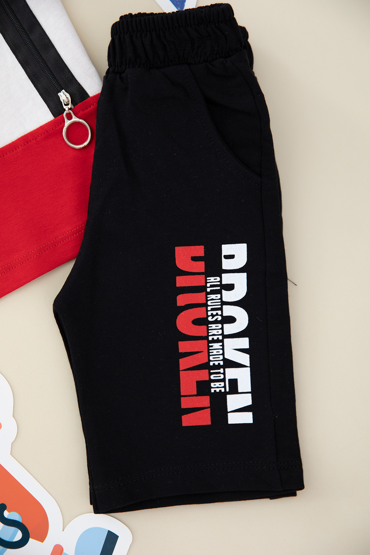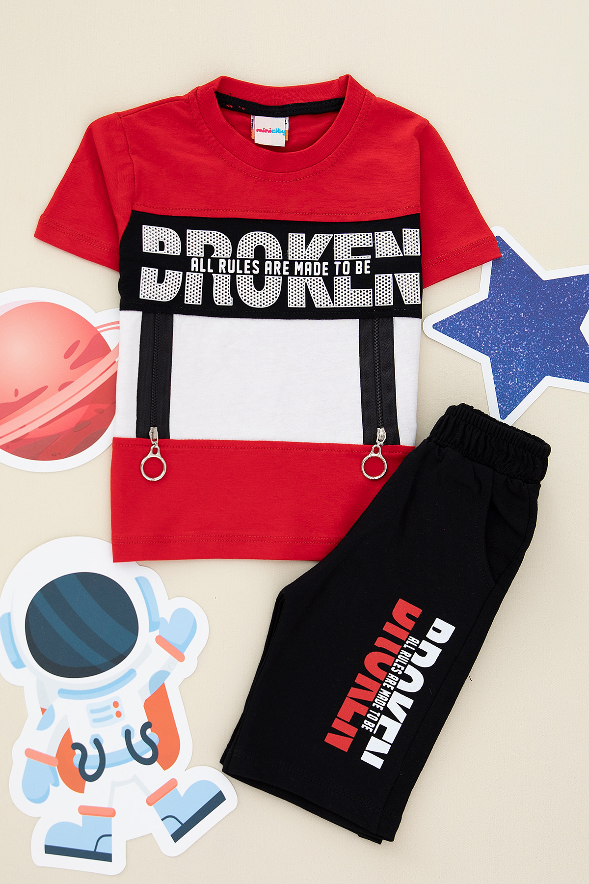 Erkek Çocuk Broken Baskılı Şortlu Takım - M-308 (1-4 Yaş)