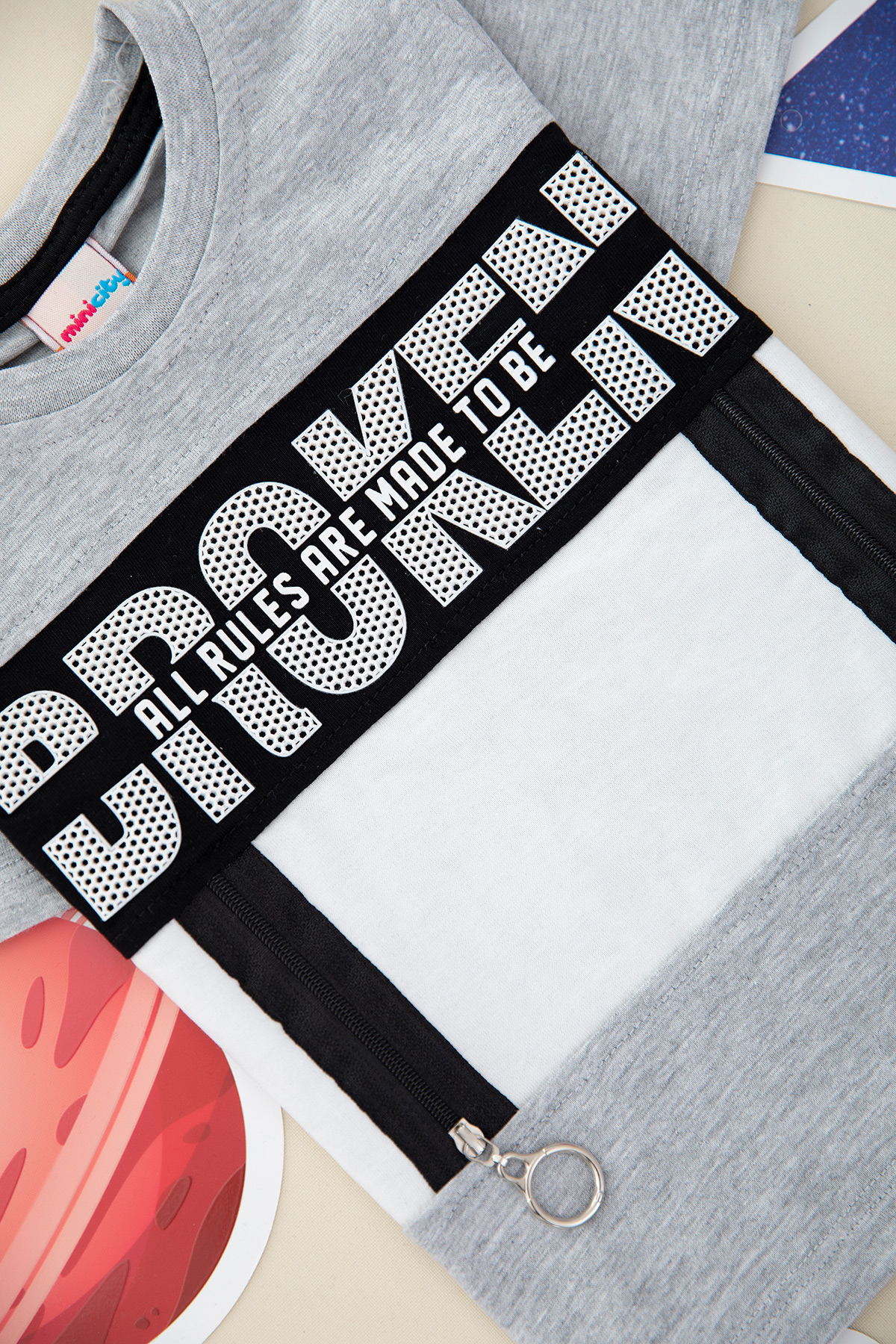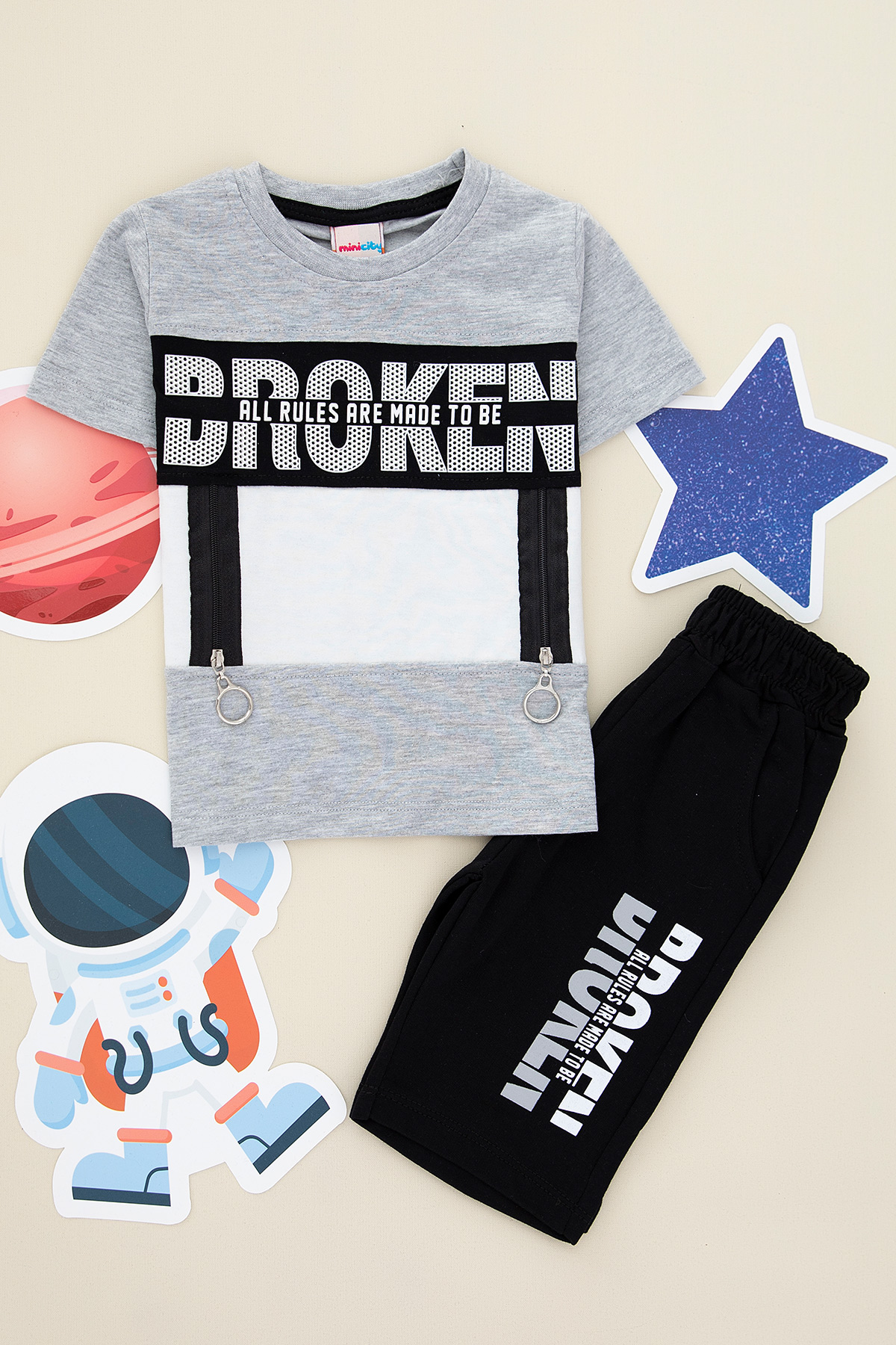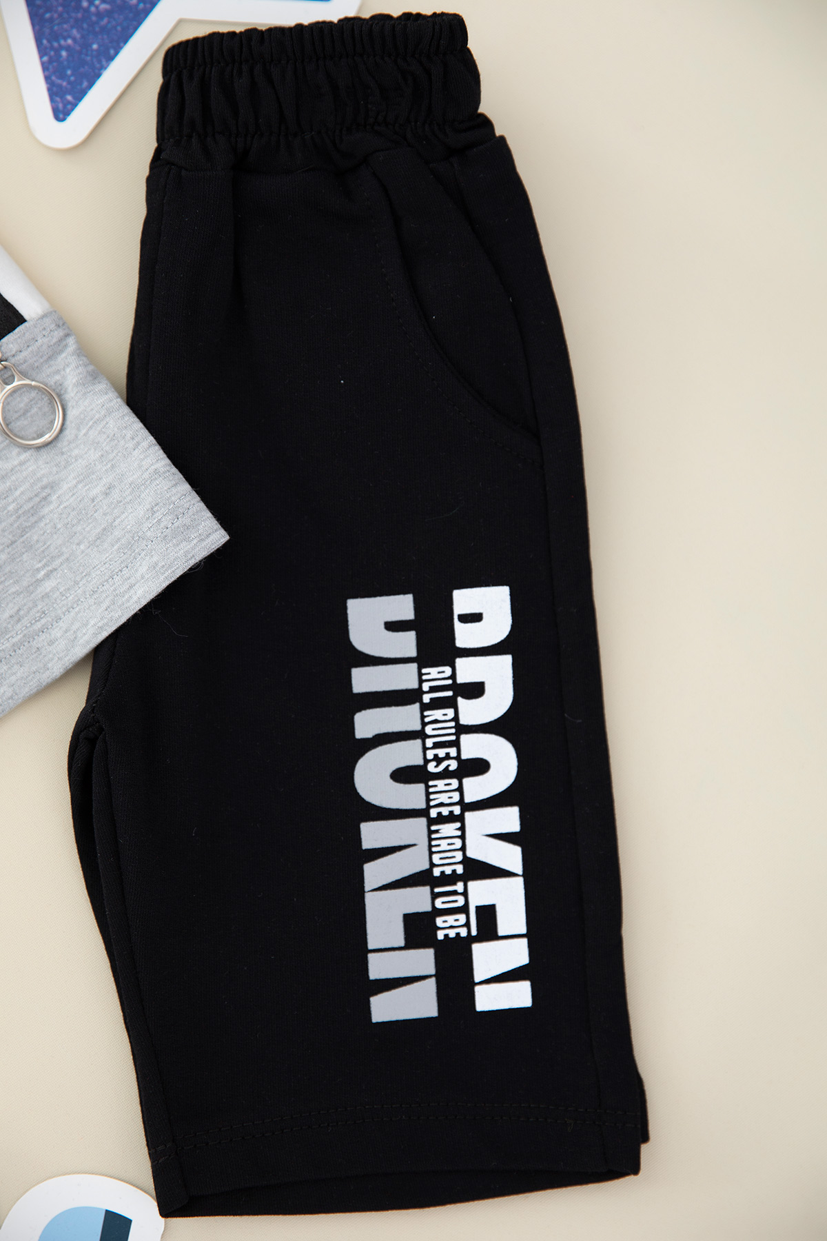 Erkek Çocuk Broken Baskılı Şortlu Takım - M-308 (1-4 Yaş)