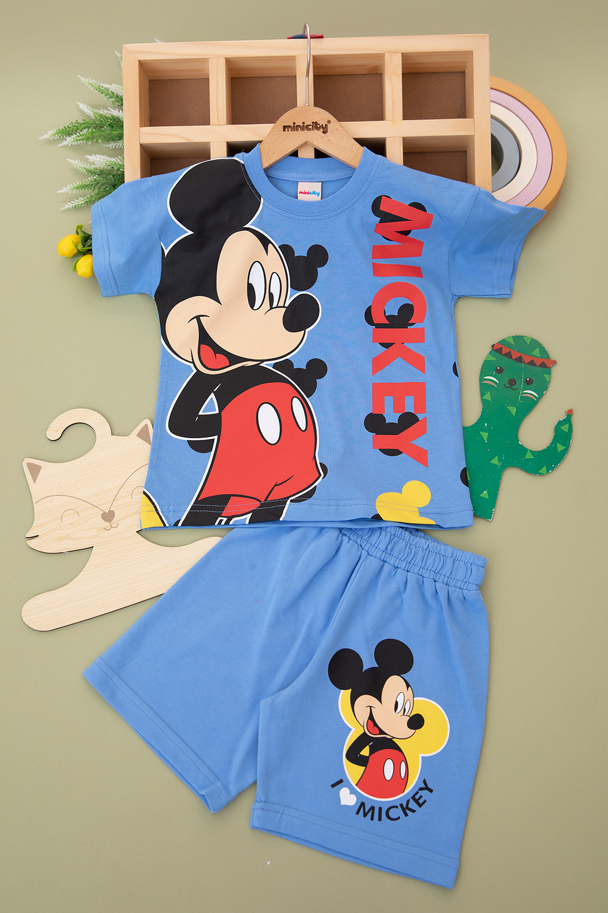 Erkek Çocuk Büyük Mickey Baskılı Şortlu Takım (4-10 Yaş)