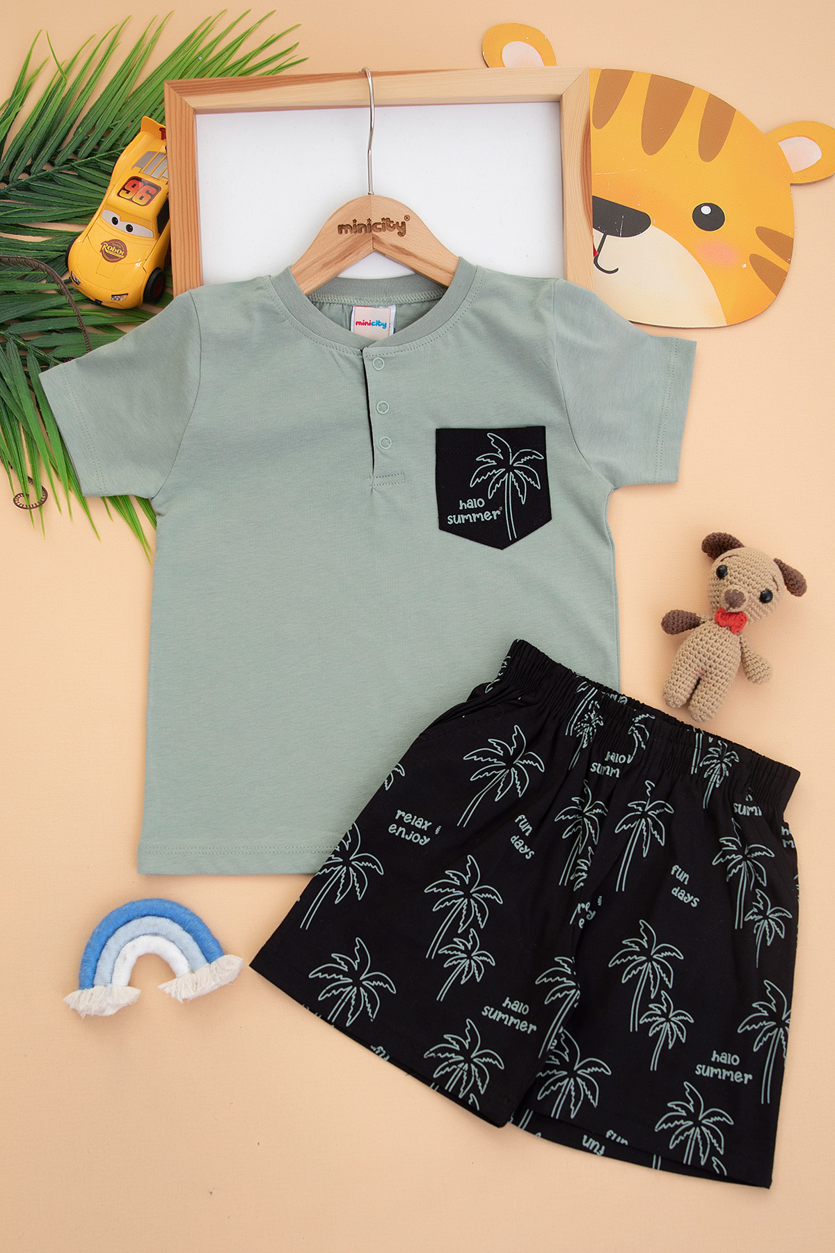 Erkek Çocuk Cebi Palmiye Şortlu Takım - 24306 (3-6 Yaş)