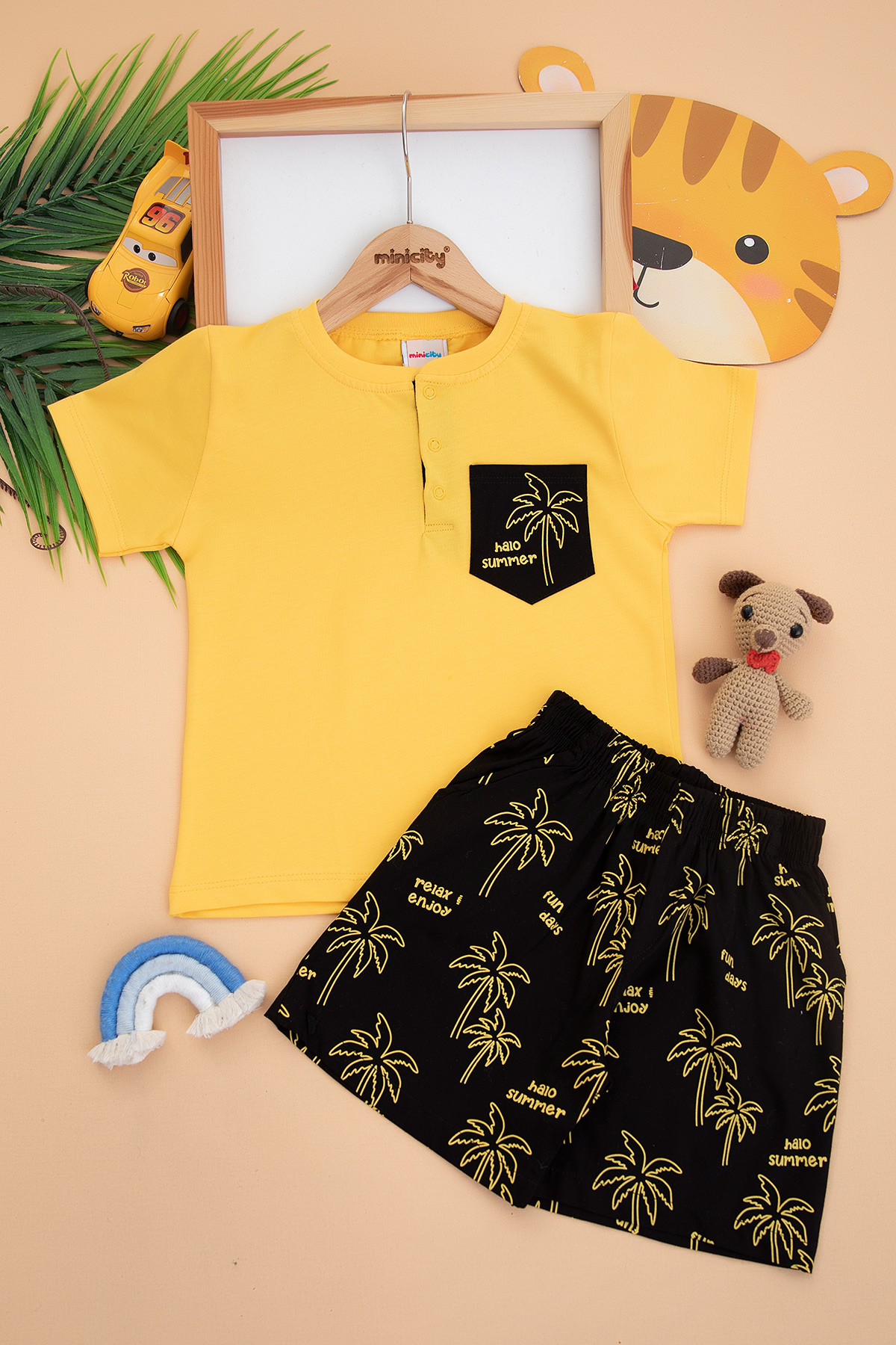 Erkek Çocuk Cebi Palmiye Şortlu Takım - 24306 (3-6 Yaş)
