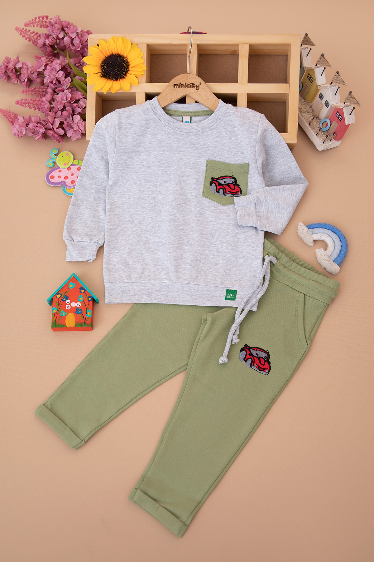 Erkek Çocuk Cep Nakışlı Duble Paça Takım - H-46 (2-7 Yaş)