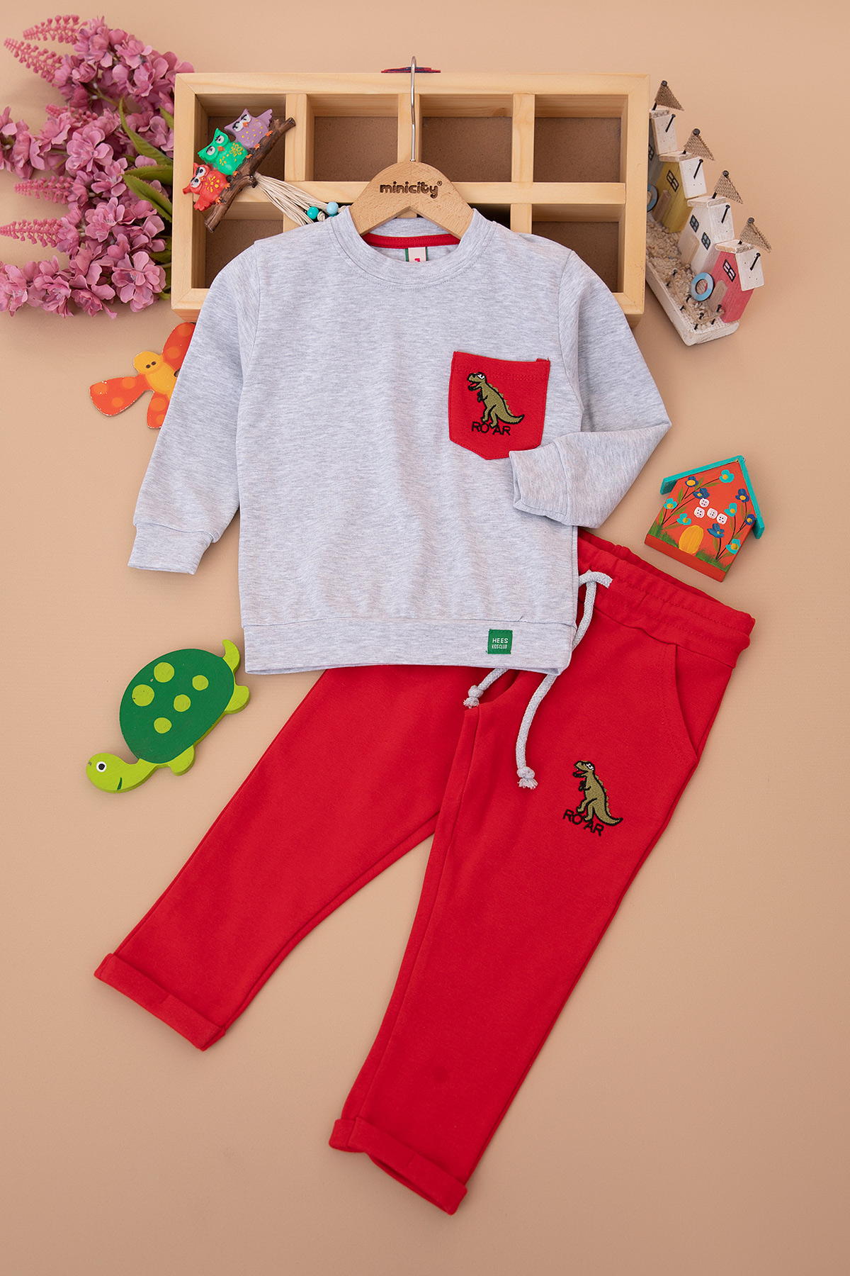 Erkek Çocuk Cep Nakışlı Duble Paça Takım - H-46 (2-7 Yaş)