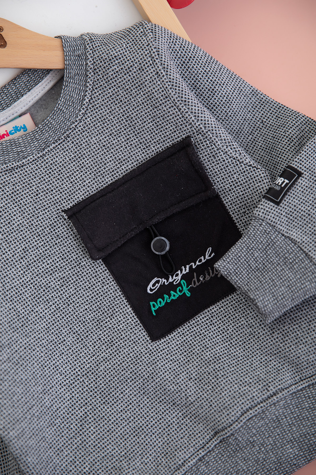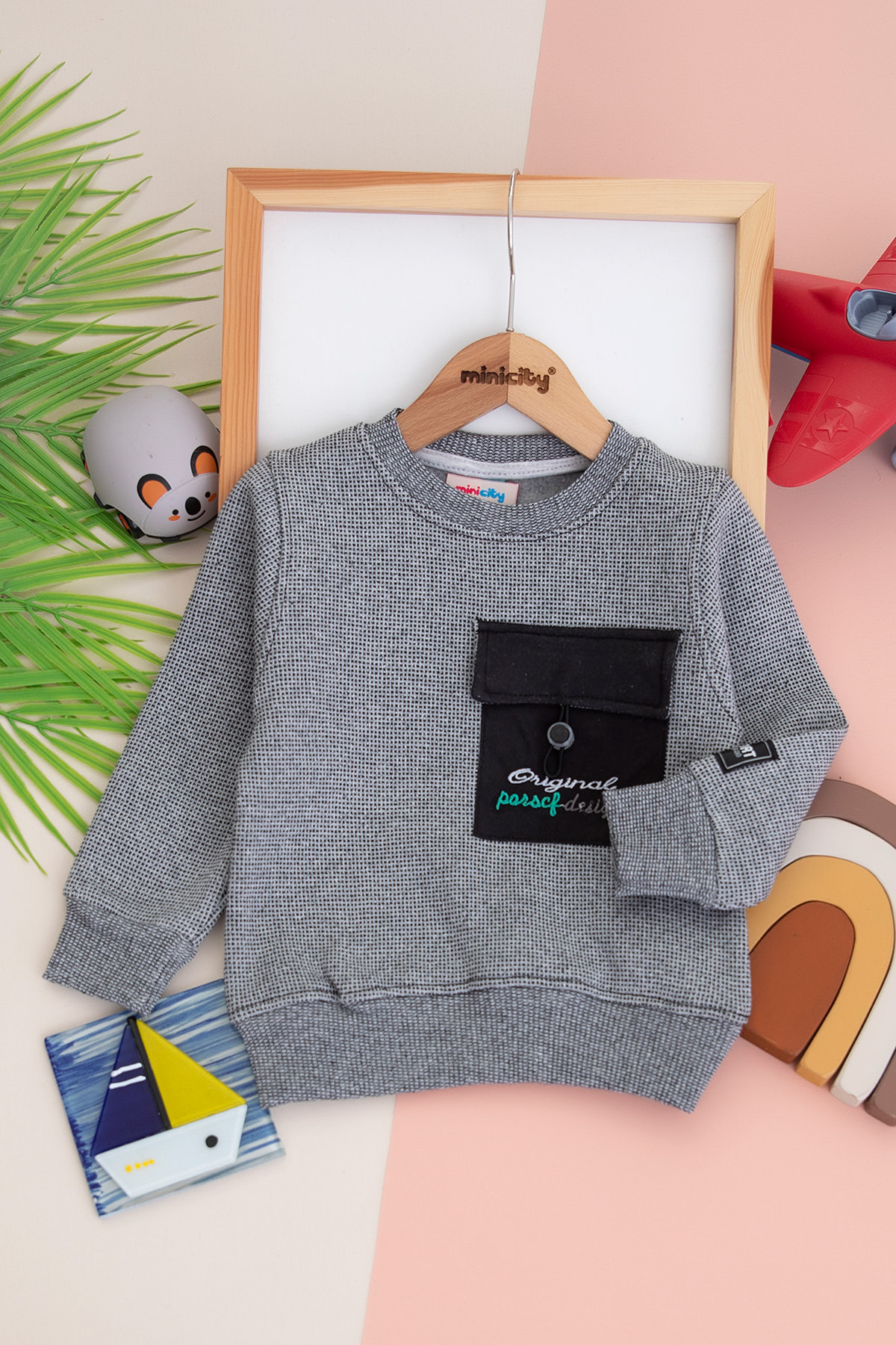 Erkek Çocuk Cep Yazı Nakışlı Sweat - 1111 (1-4 Yaş)
