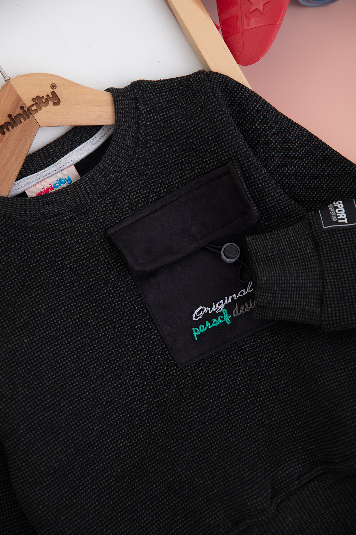 Erkek Çocuk Cep Yazı Nakışlı Sweat - 1111 (1-4 Yaş)