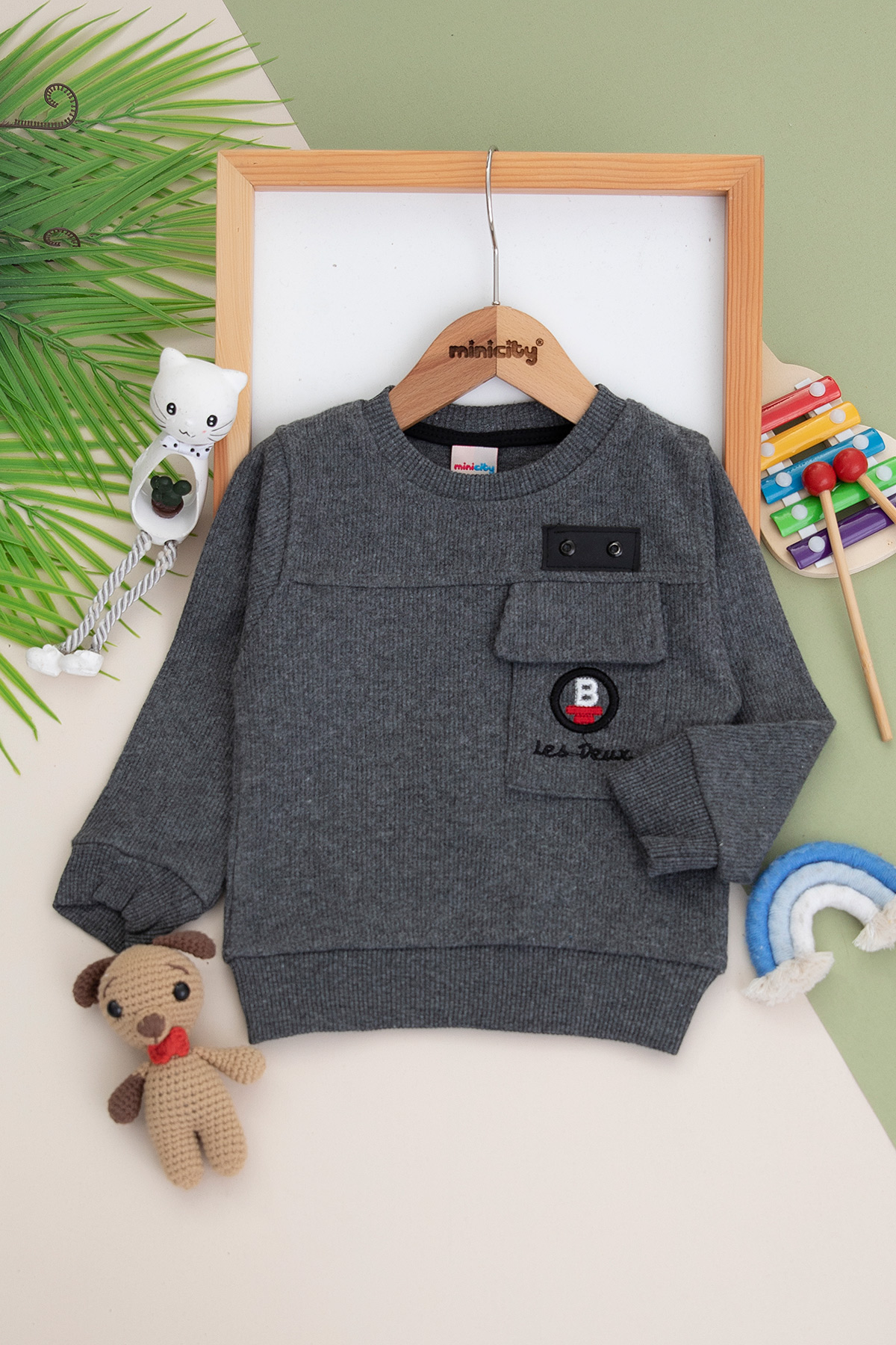 Erkek Çocuk Cepli Kuşgözü Armalı Sweat - 1108 (1-4 Yaş)