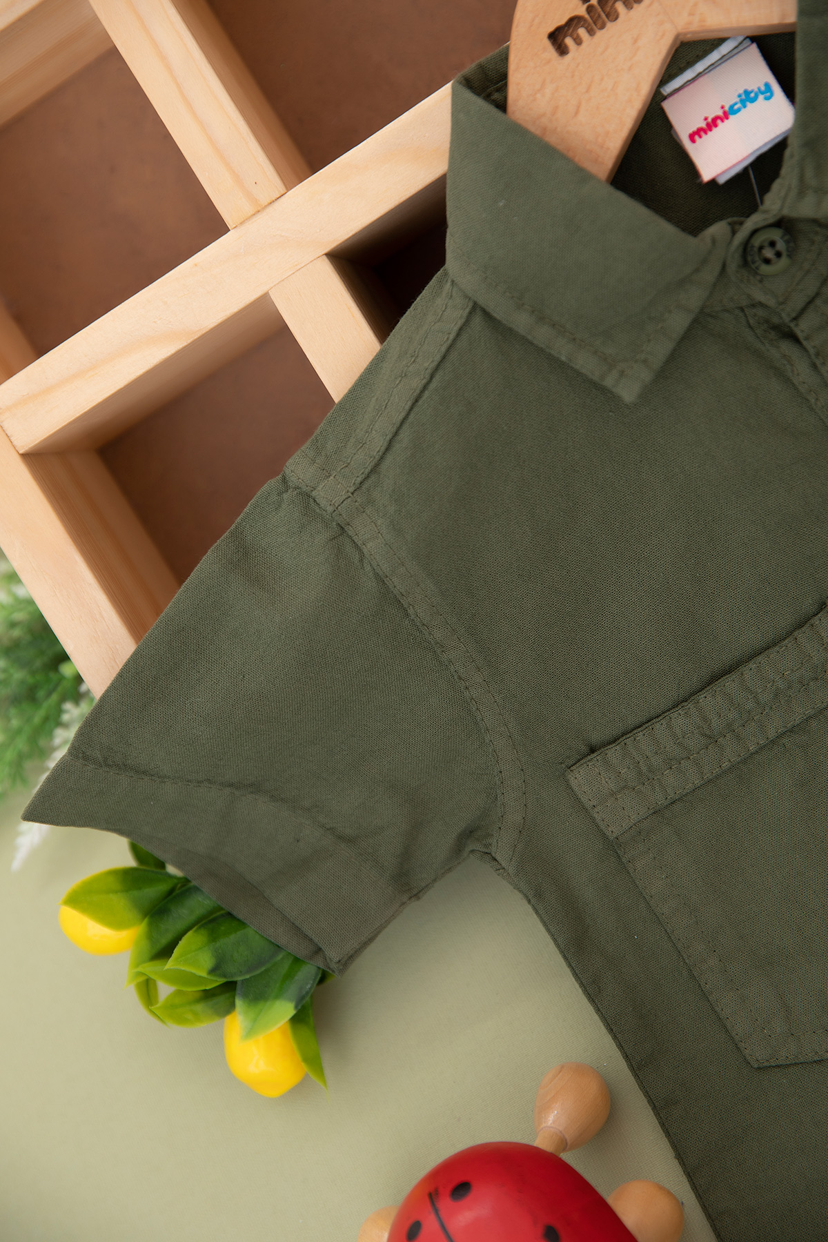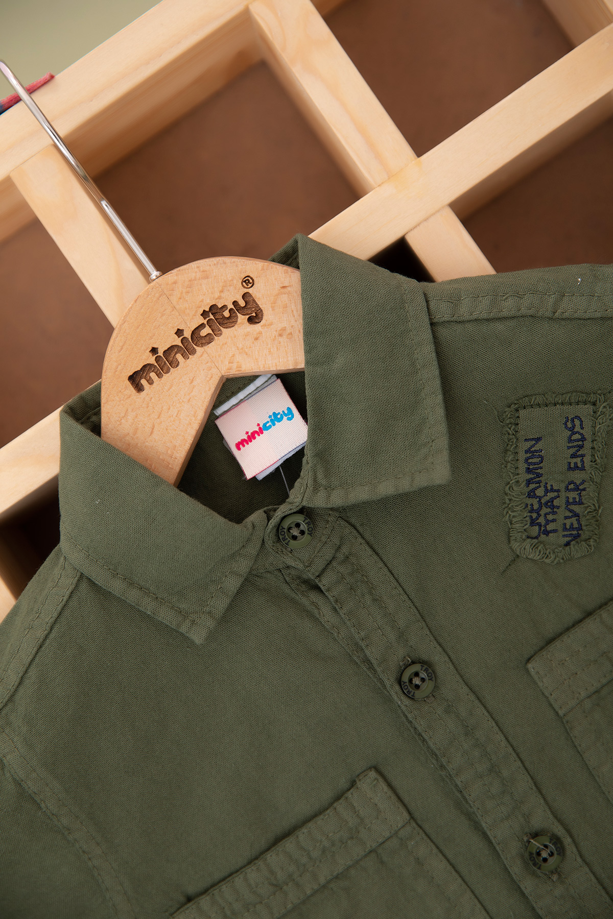 Erkek Çocuk Çift Cepli Keten Gömlek - 3571 (7-11 Yaş)