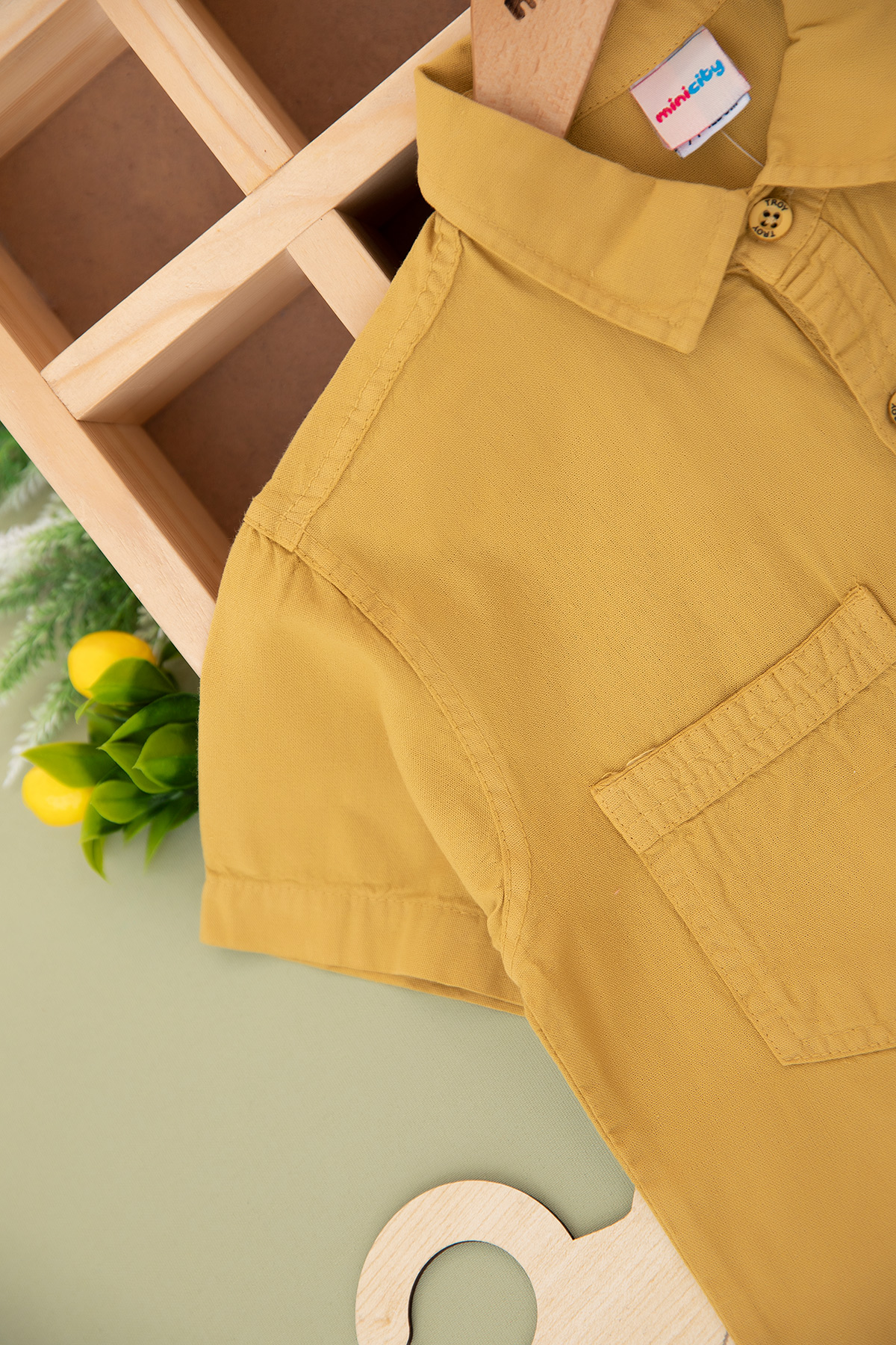 Erkek Çocuk Çift Cepli Keten Gömlek - 3571 (7-11 Yaş)