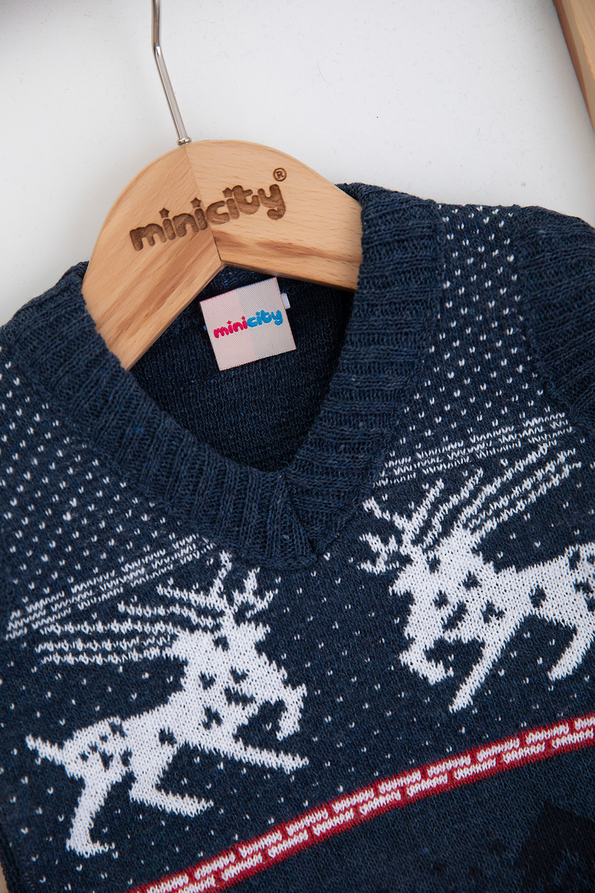 Erkek Çocuk Çift Geyik Nakışlı Süveter (1-3 Yaş)
