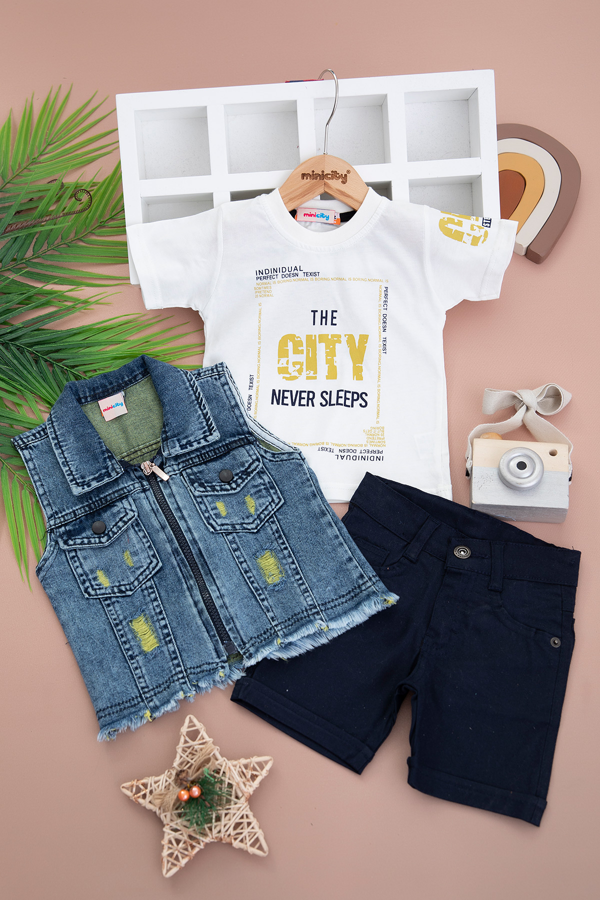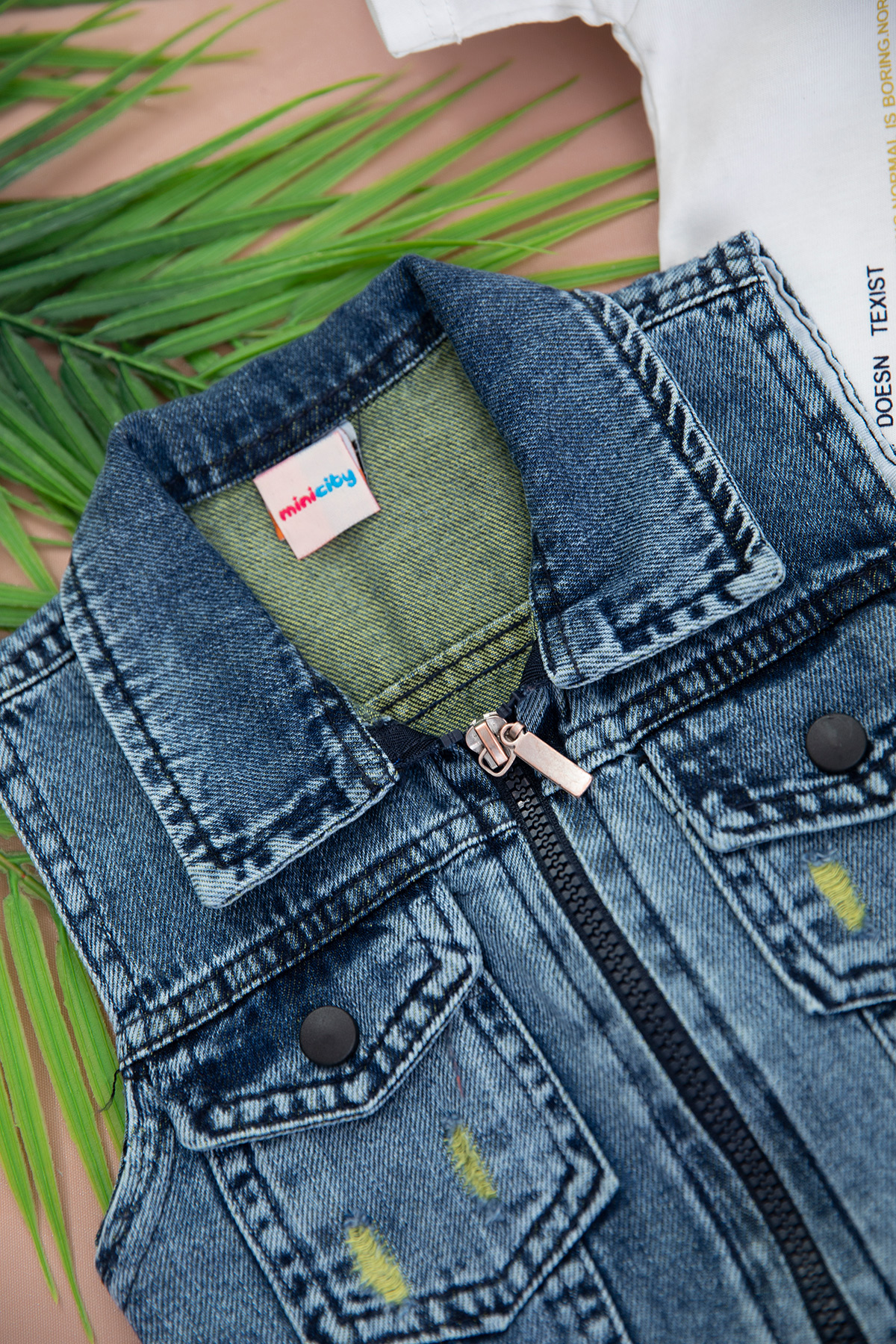 Erkek Çocuk City Kot Yelekli Üçlü Takım - 3536 (1-4 Yaş)