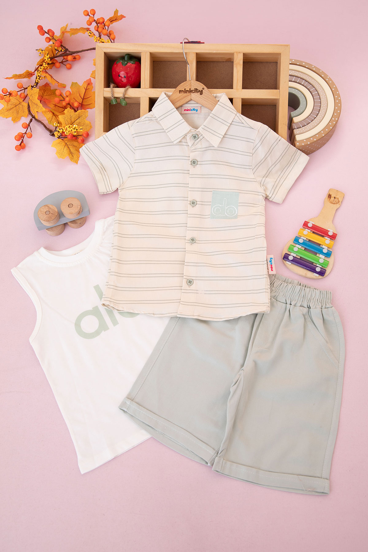 Erkek Çocuk Çizgi Alo Baskılı Gömlekli 3`Lü Takım - 90109 (5-8 Yaş)