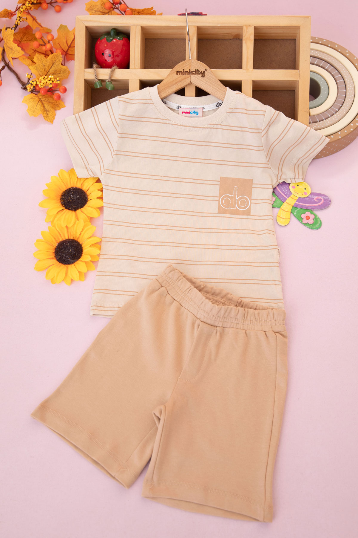Erkek Çocuk Çizgili Alo Baskılı Şortlu Takım - 40975 (2-5 Yaş)