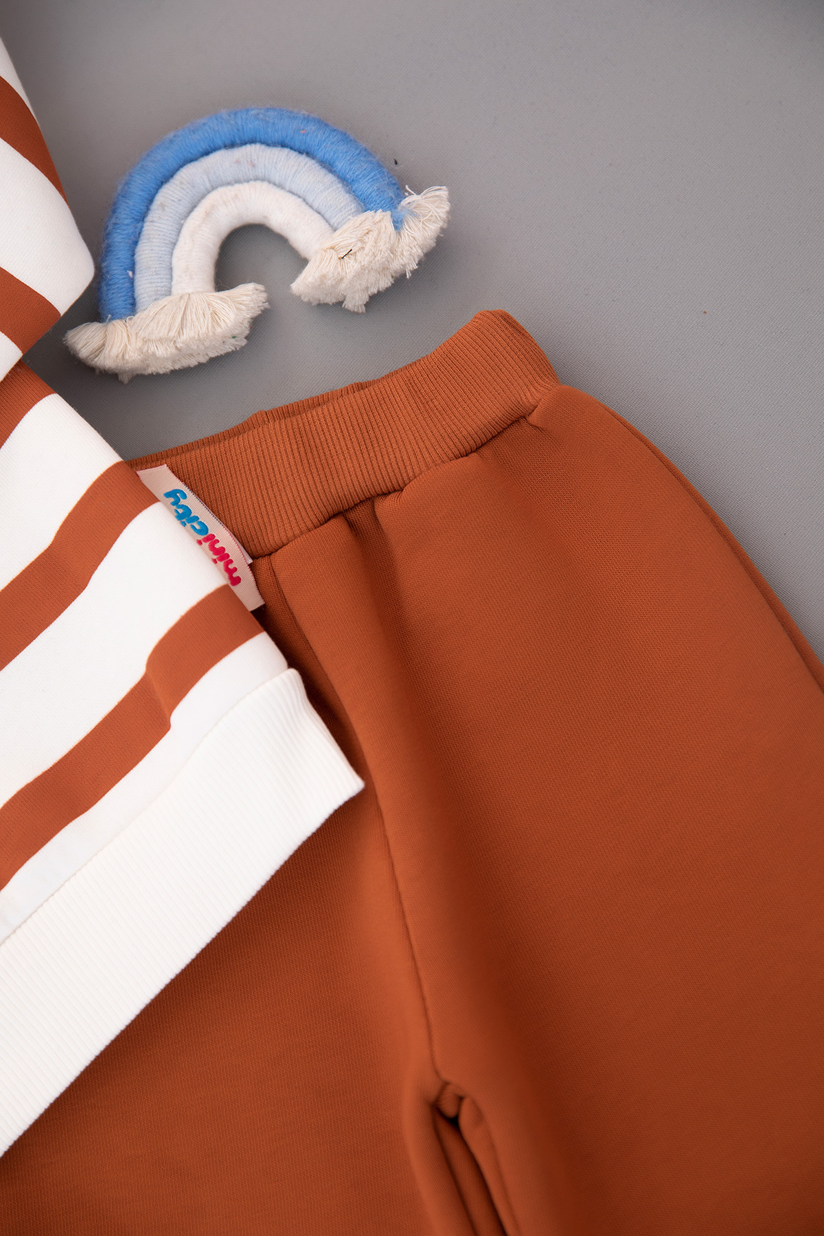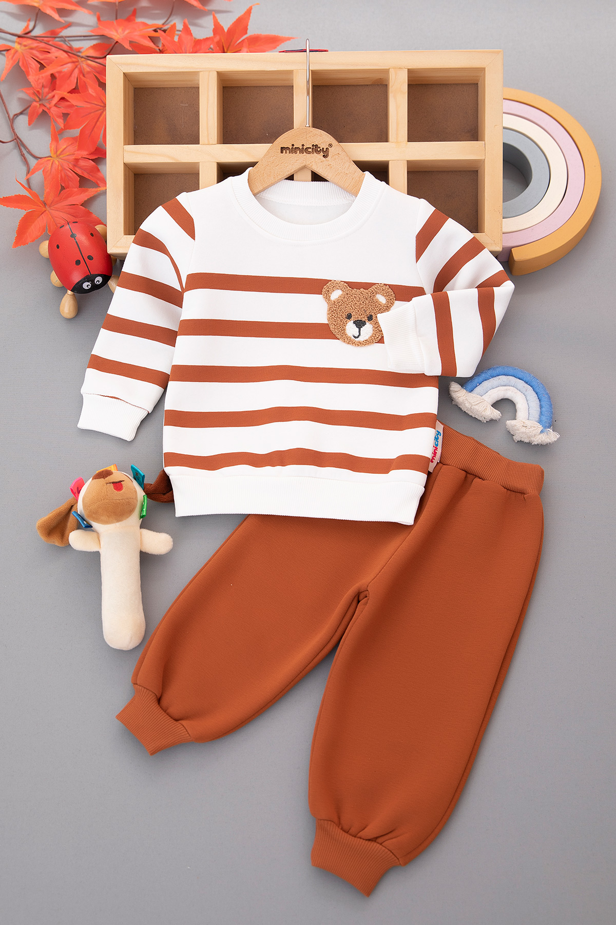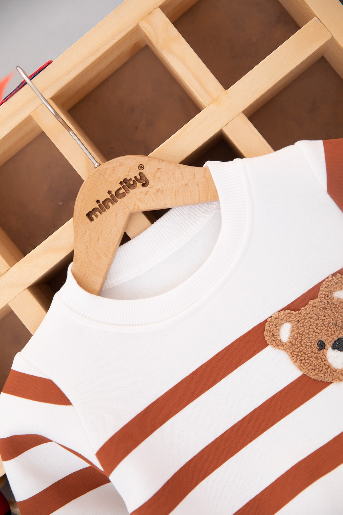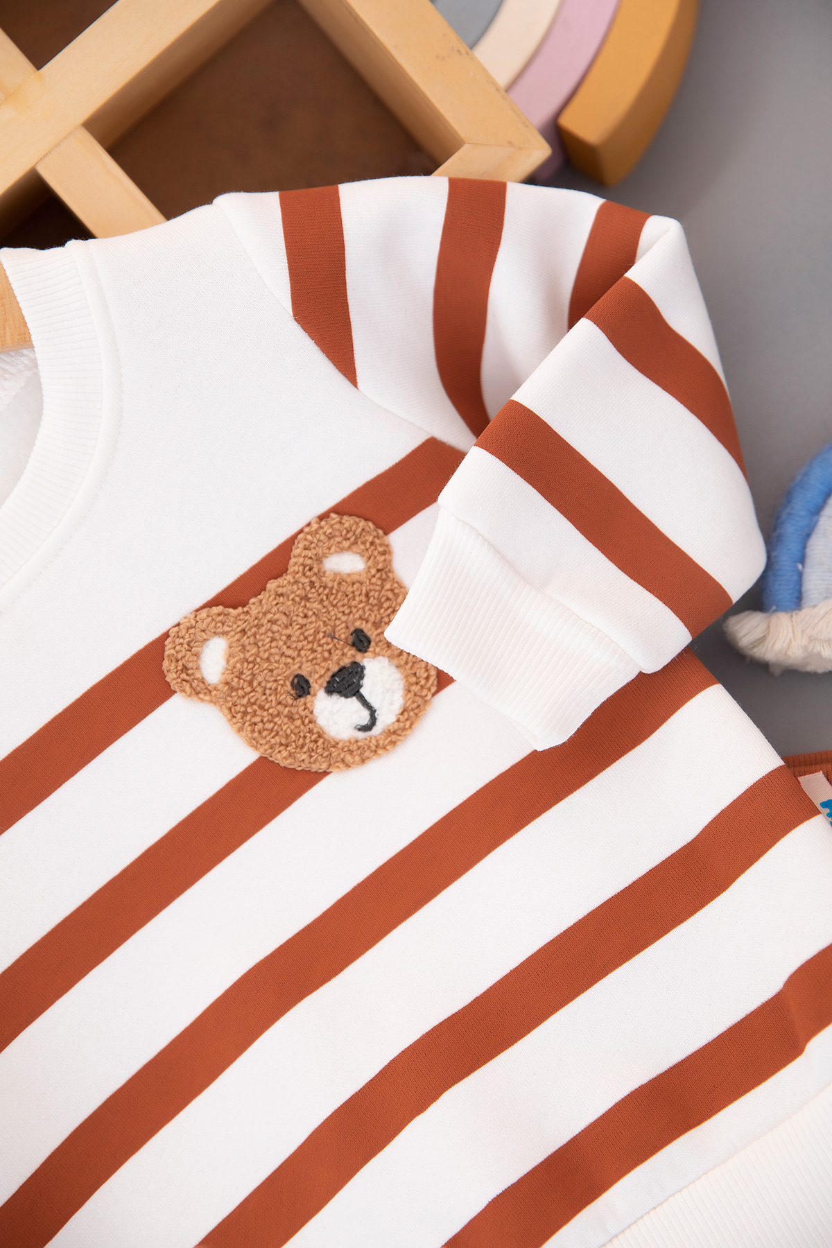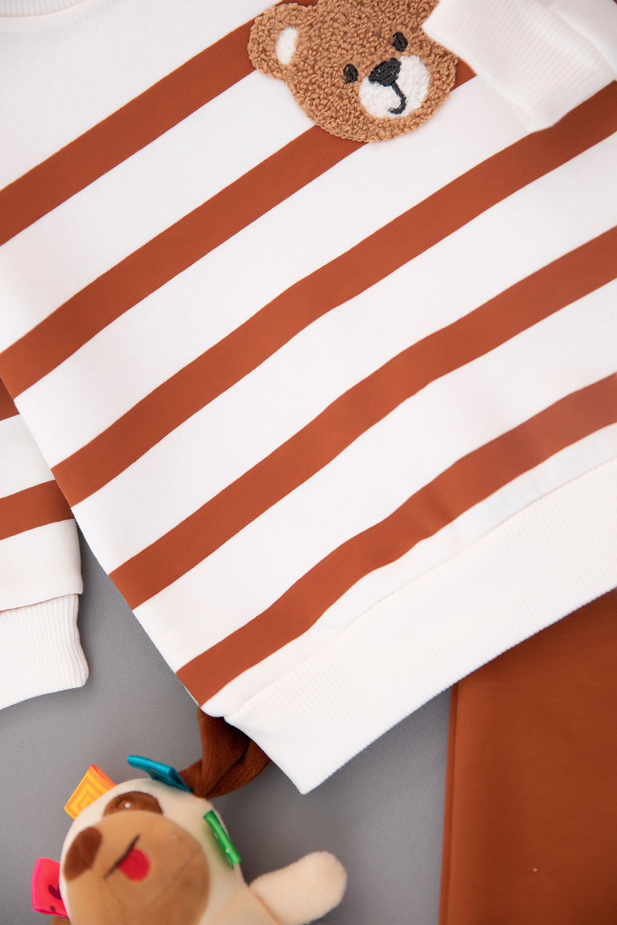 Erkek Çocuk Çizgili Ayı Nakışlı Üç İp Takım - 8486 (1-3 Yaş)