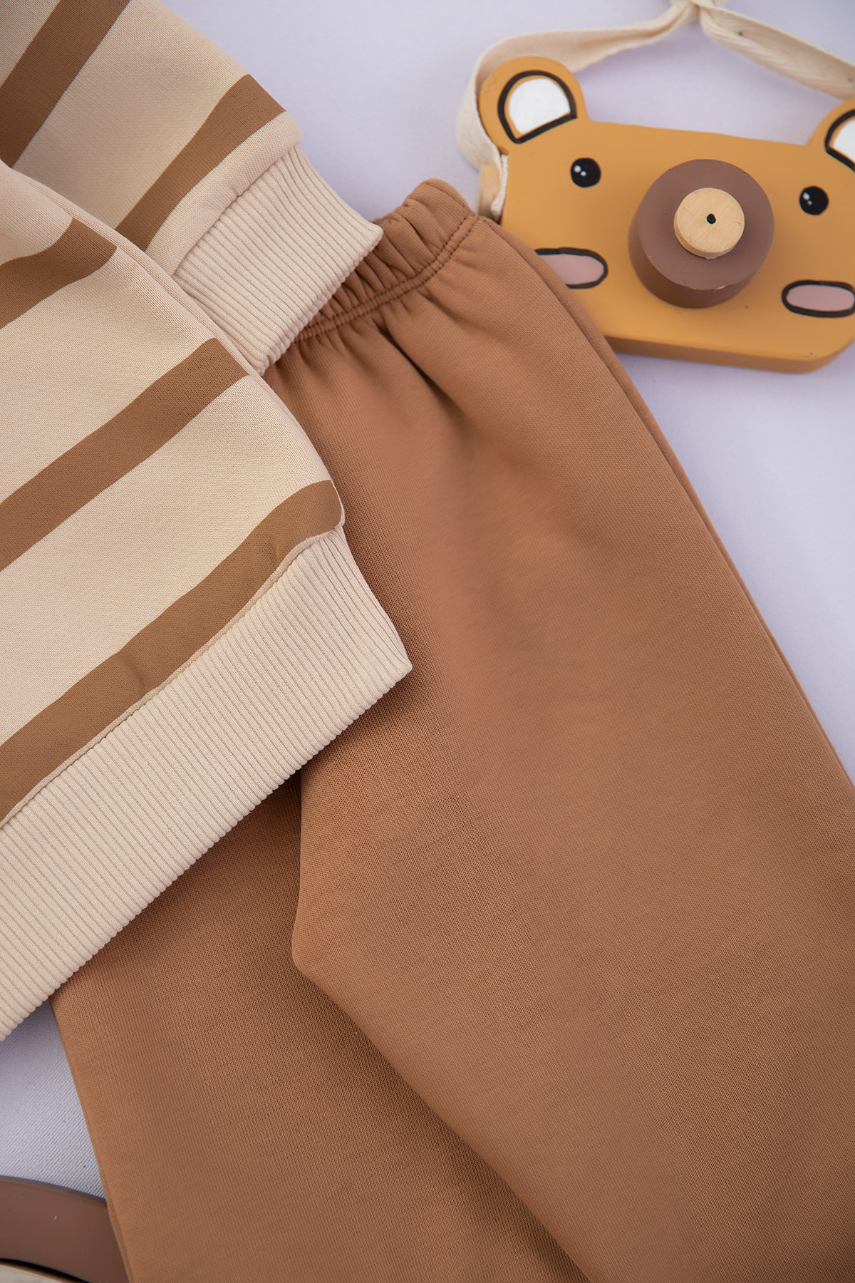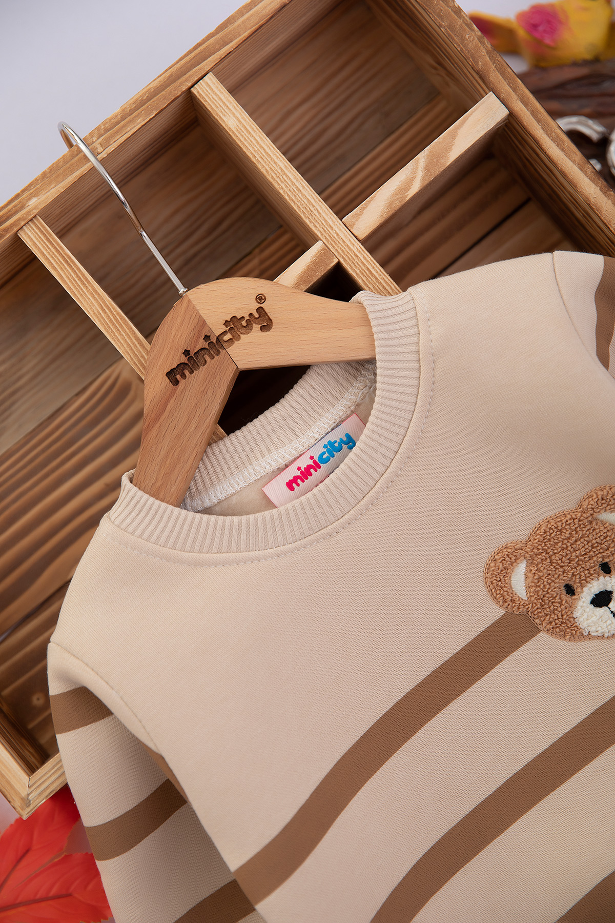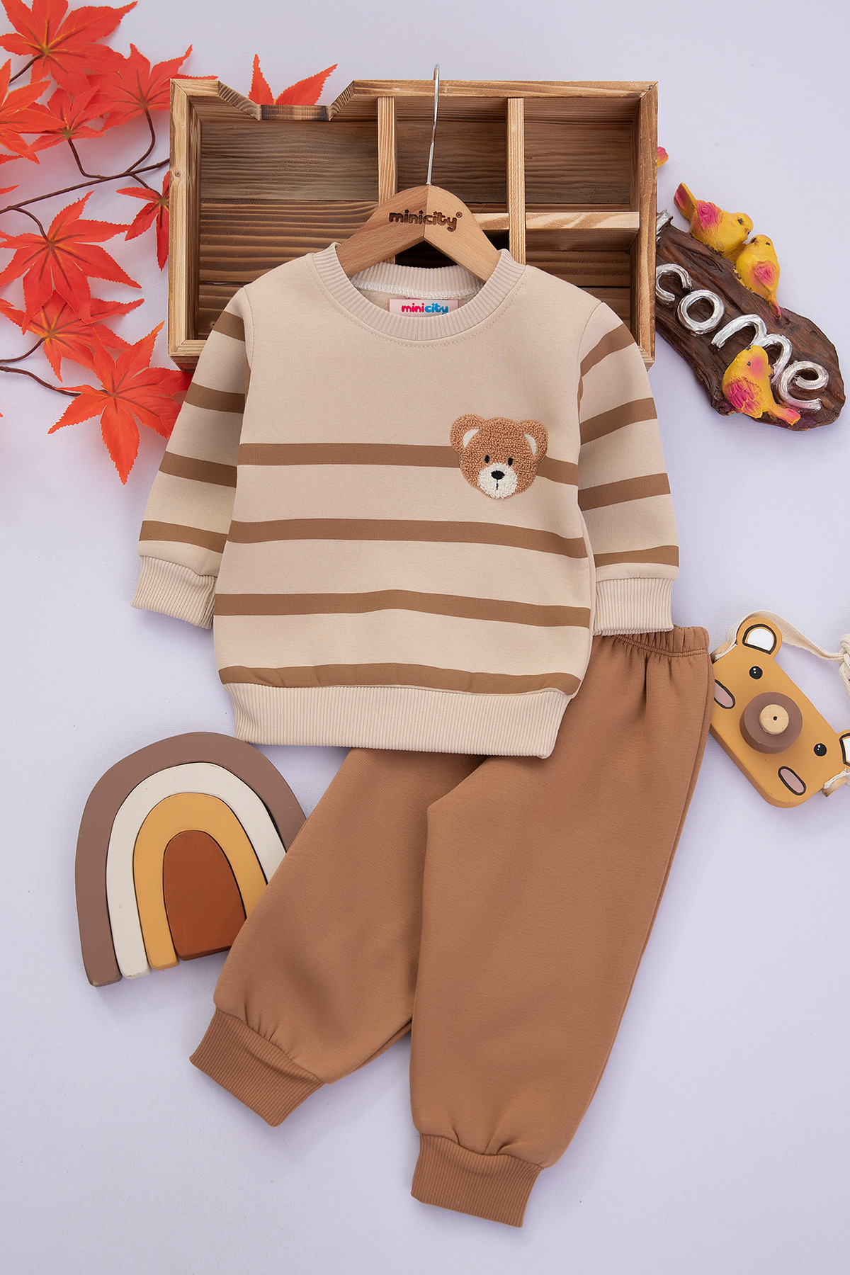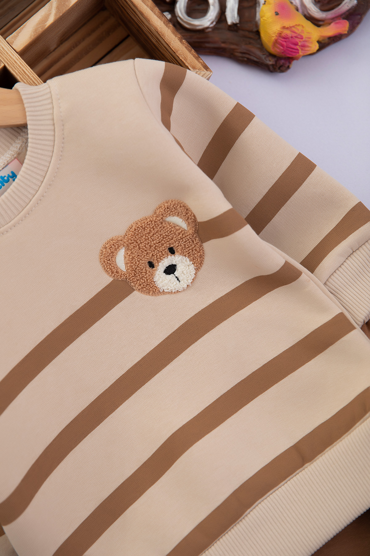 Erkek Çocuk Çizgili Ayı Nakışlı Üçip Takım - 2033 (1-3 Yaş)