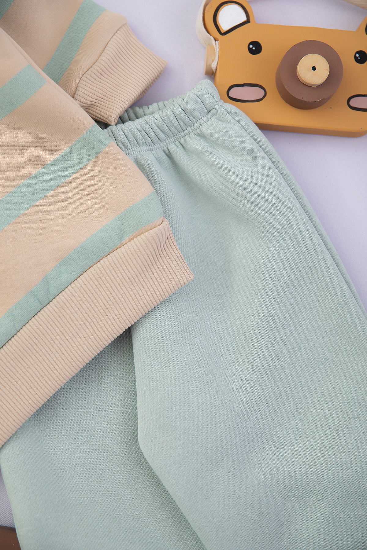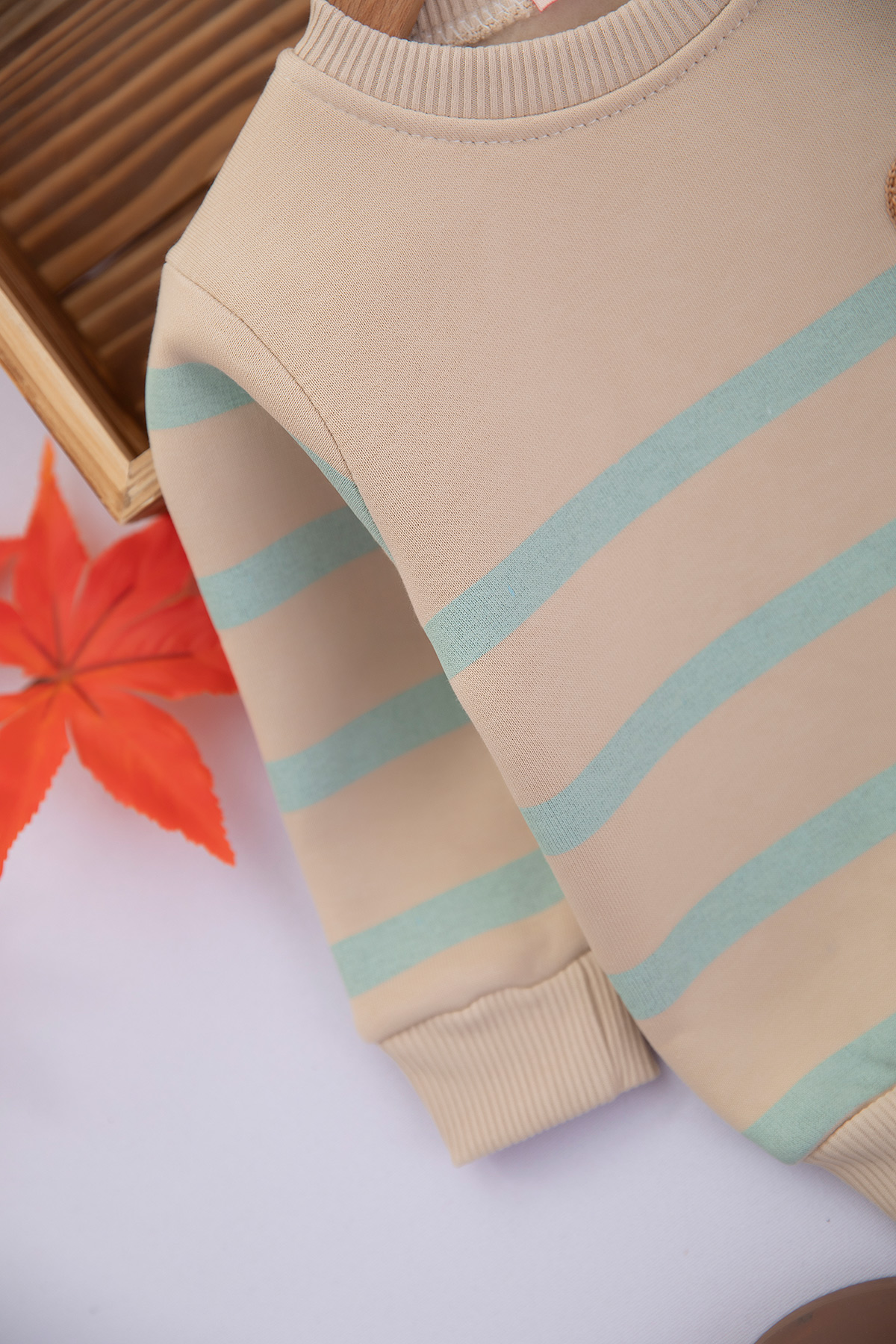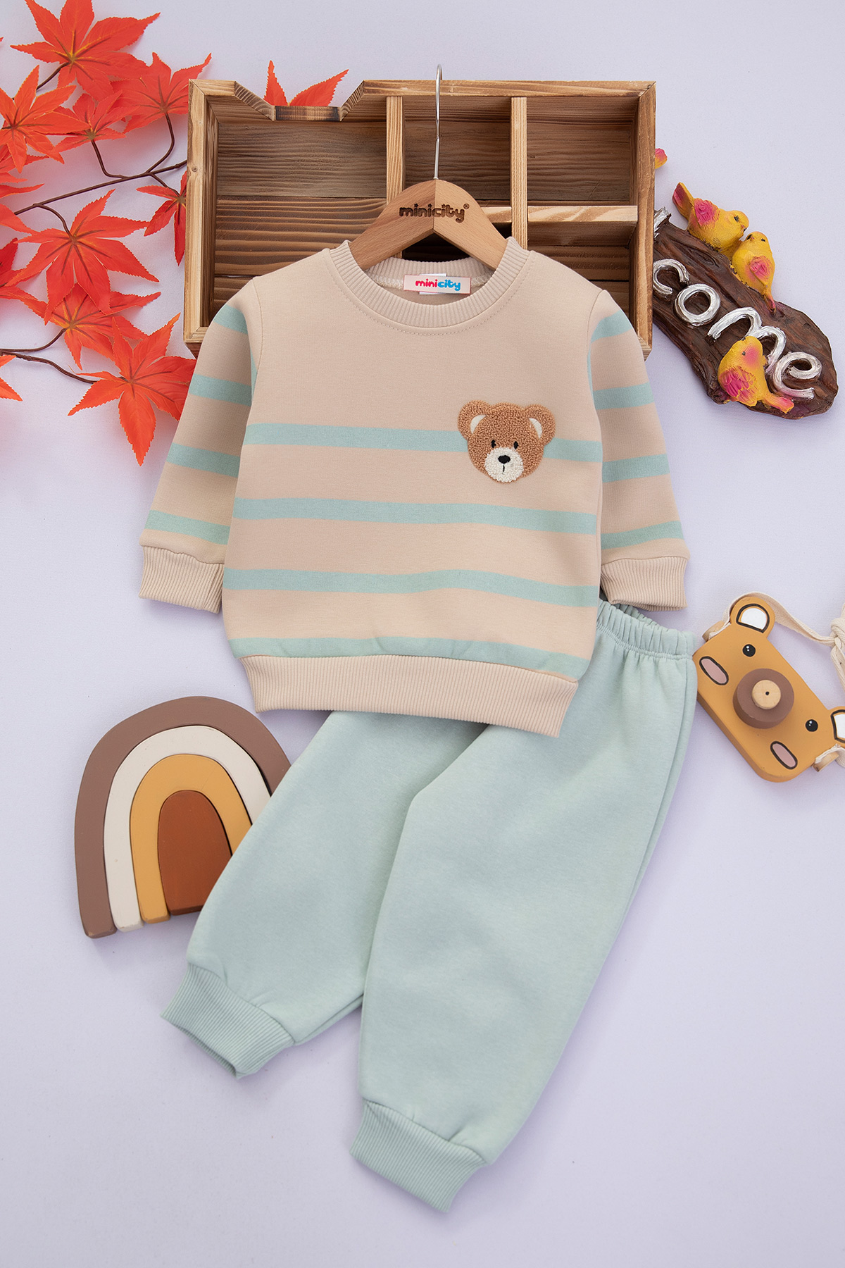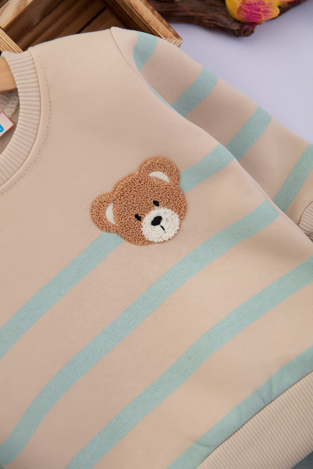 Erkek Çocuk Çizgili Ayı Nakışlı Üçip Takım - 2033 (1-3 Yaş)