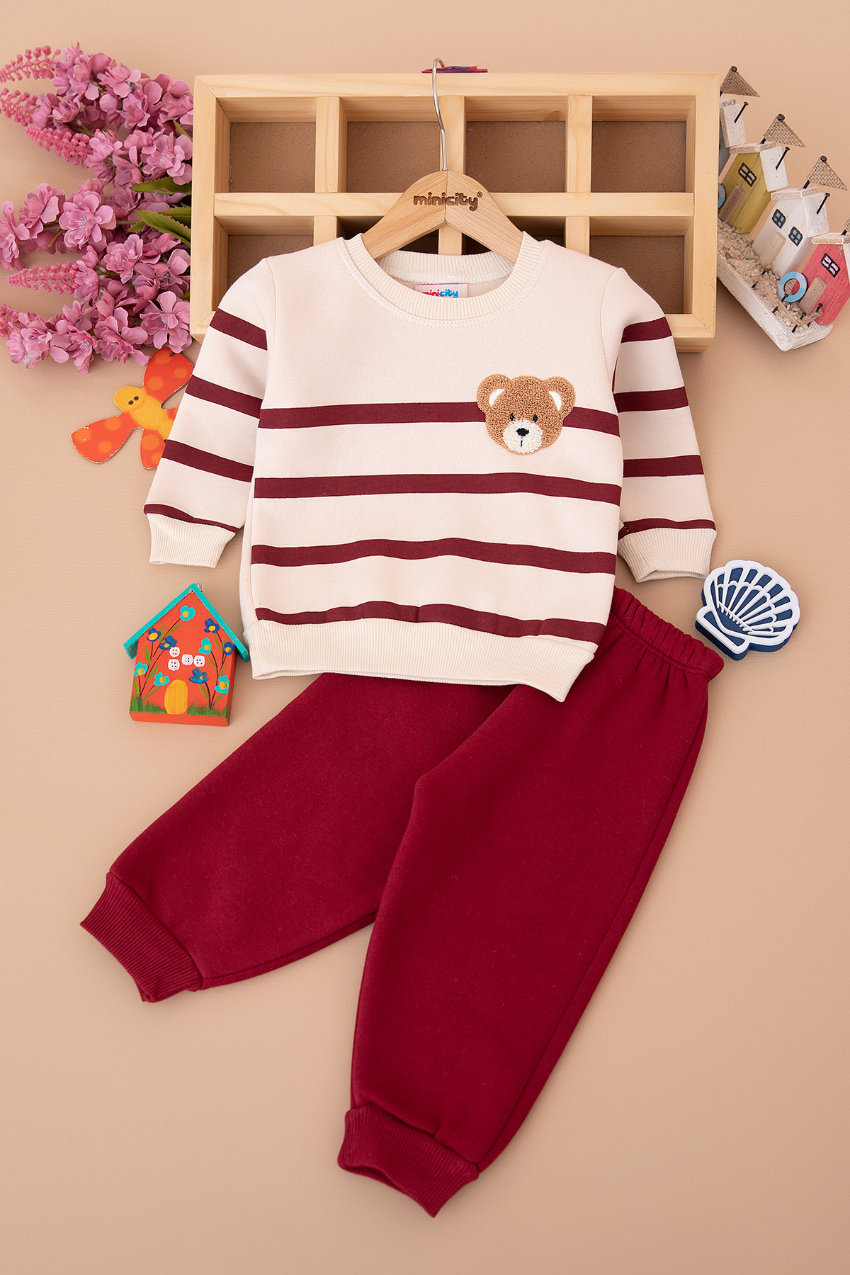 Erkek Çocuk Çizgili Ayı Nakışlı Üçip Takım - 2033 (1-3 Yaş)
