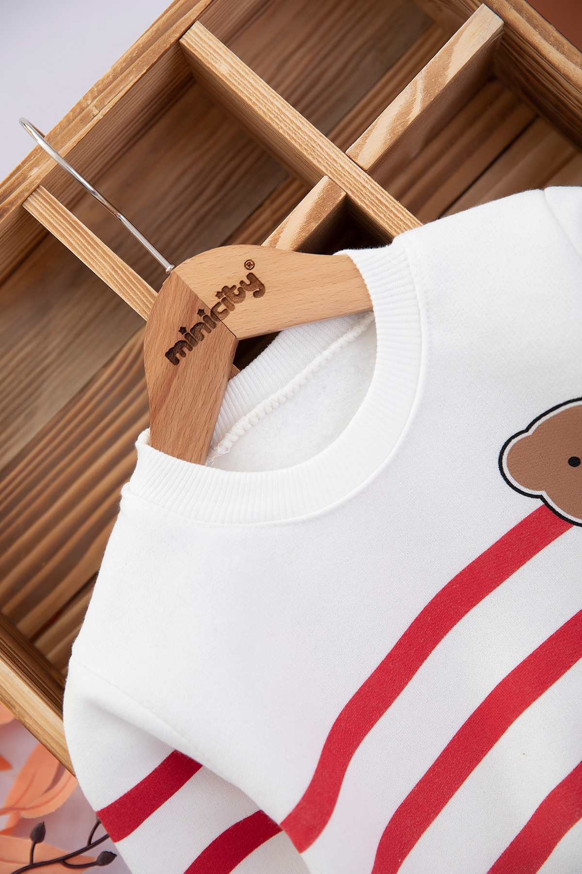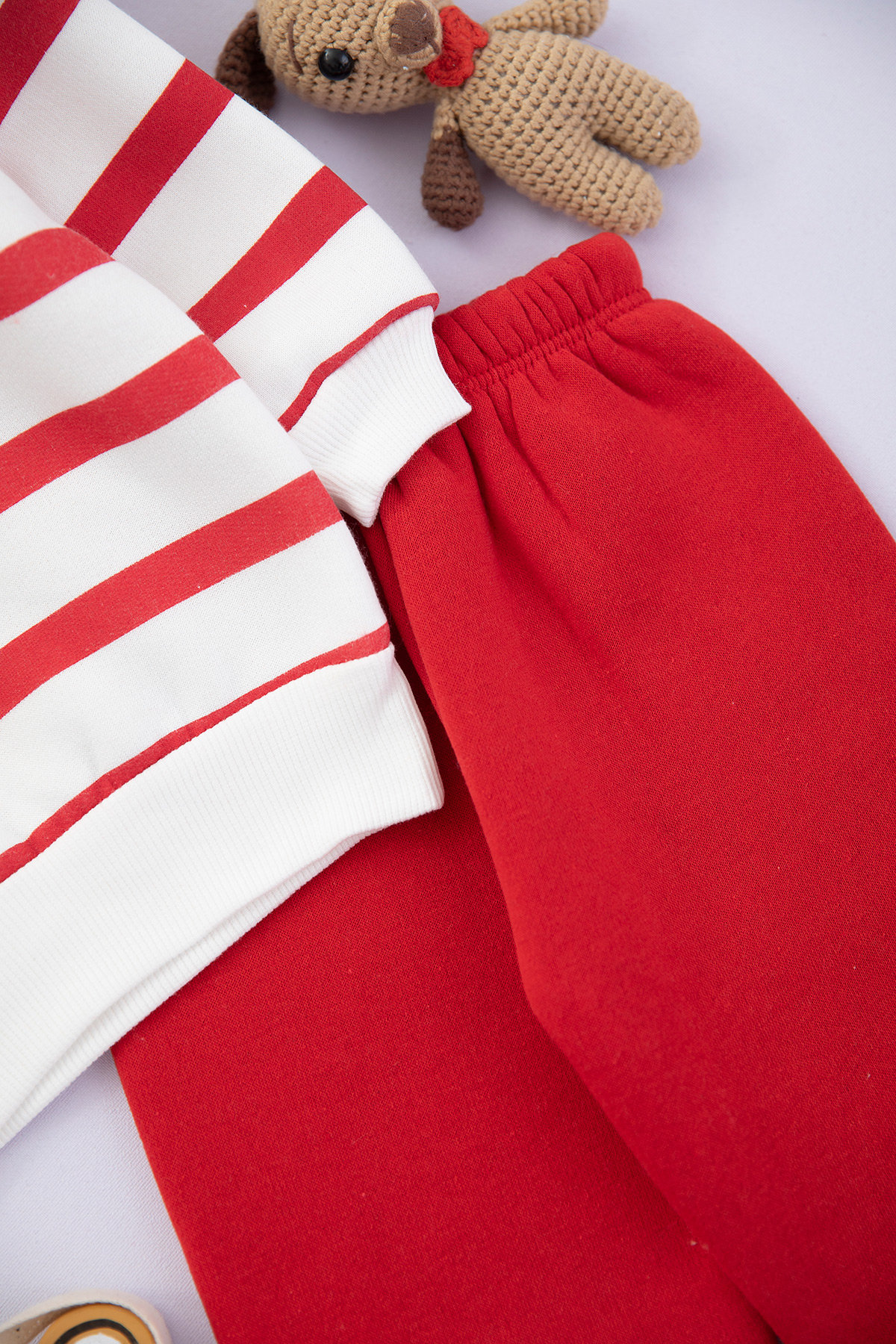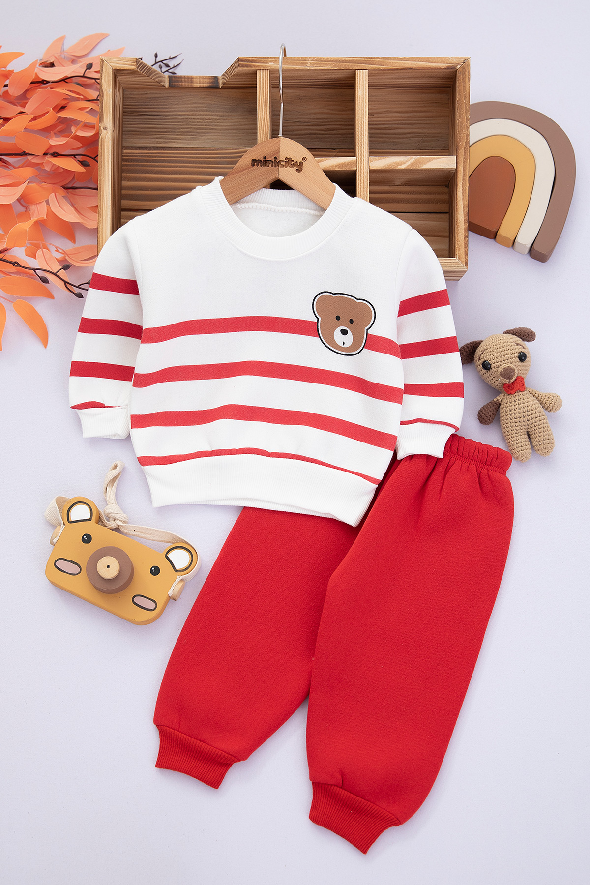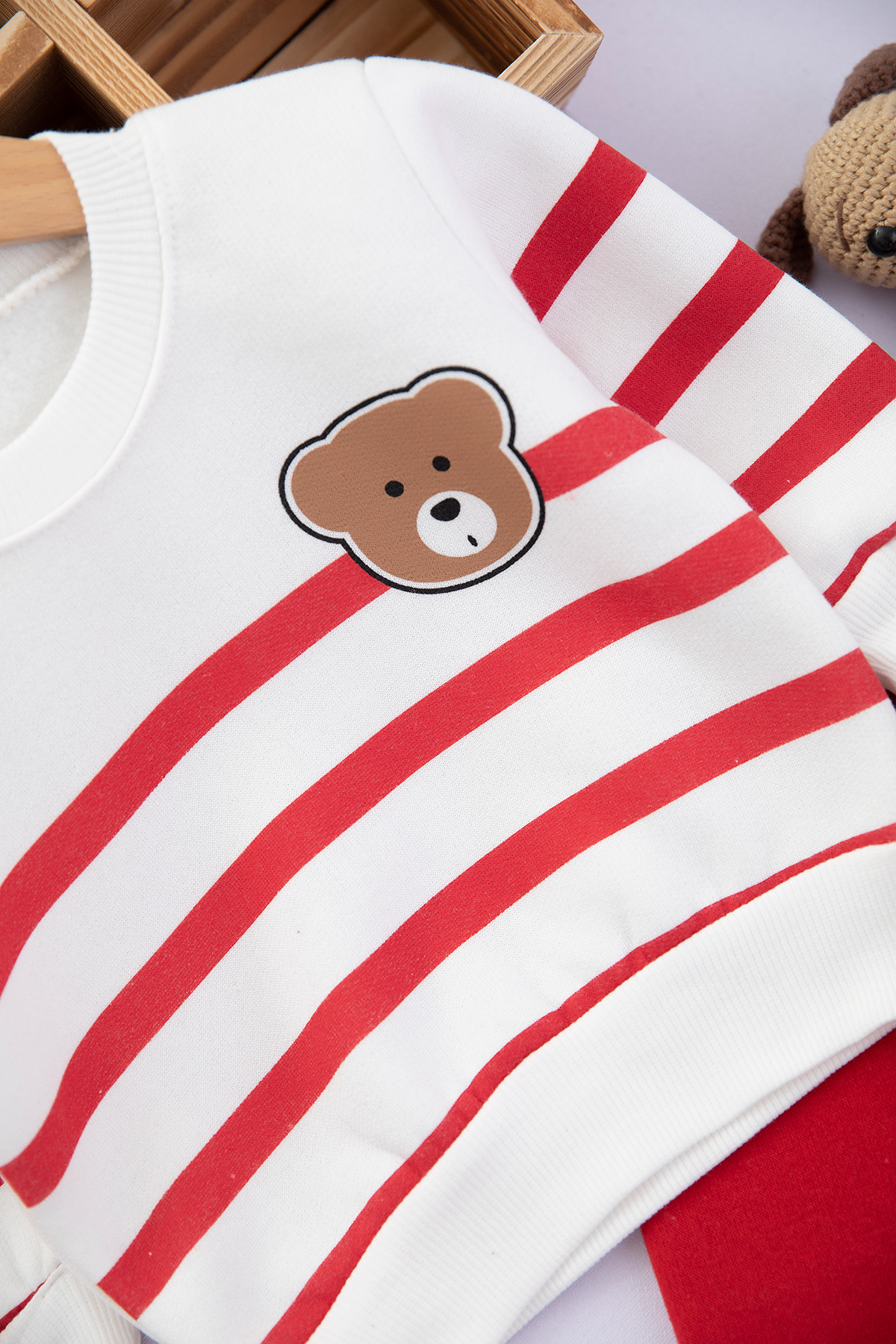 Erkek Çocuk Çizgili Ayılı Baskılı Üçip Takım - 6081 (1-3 Yaş)