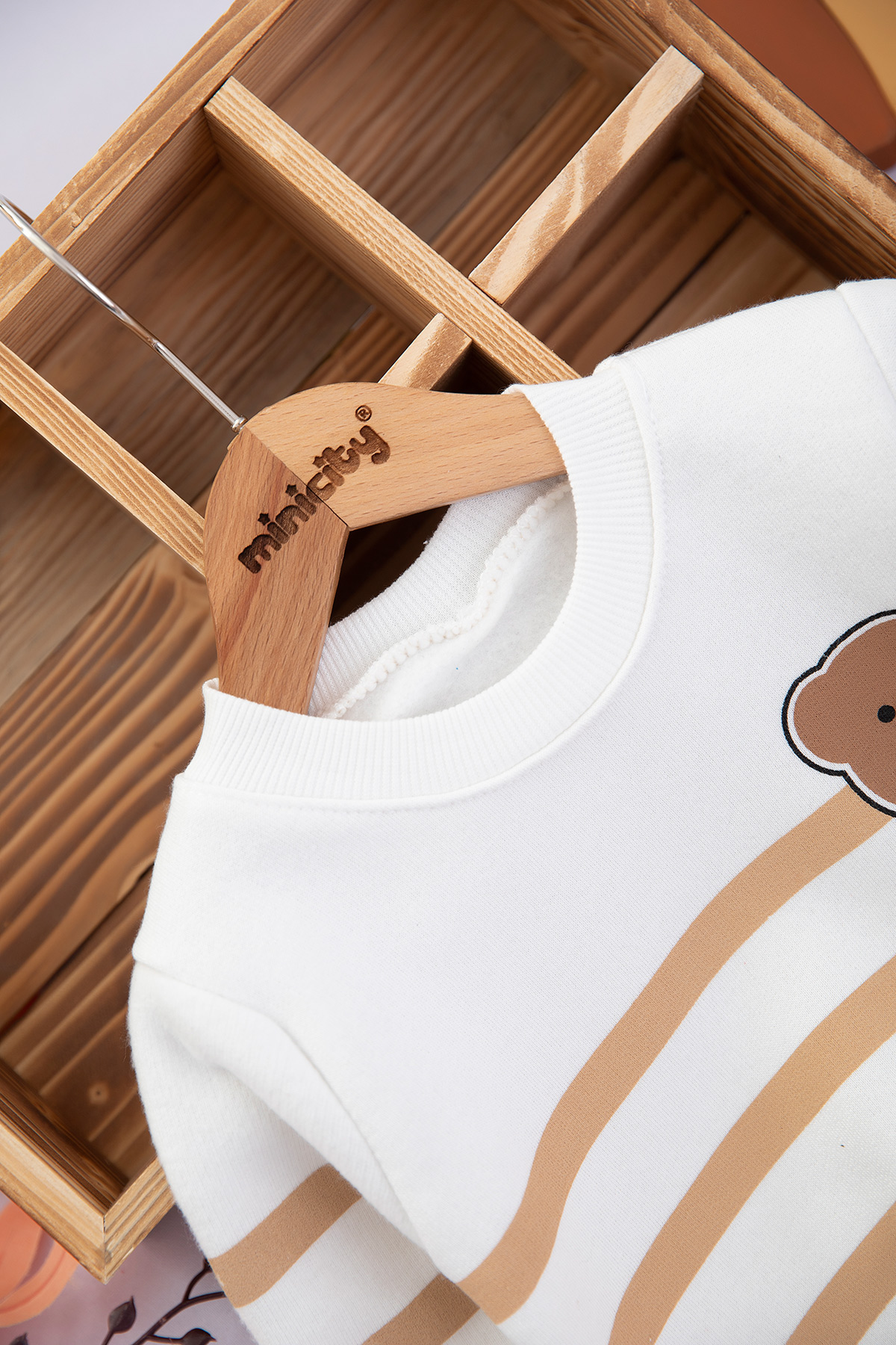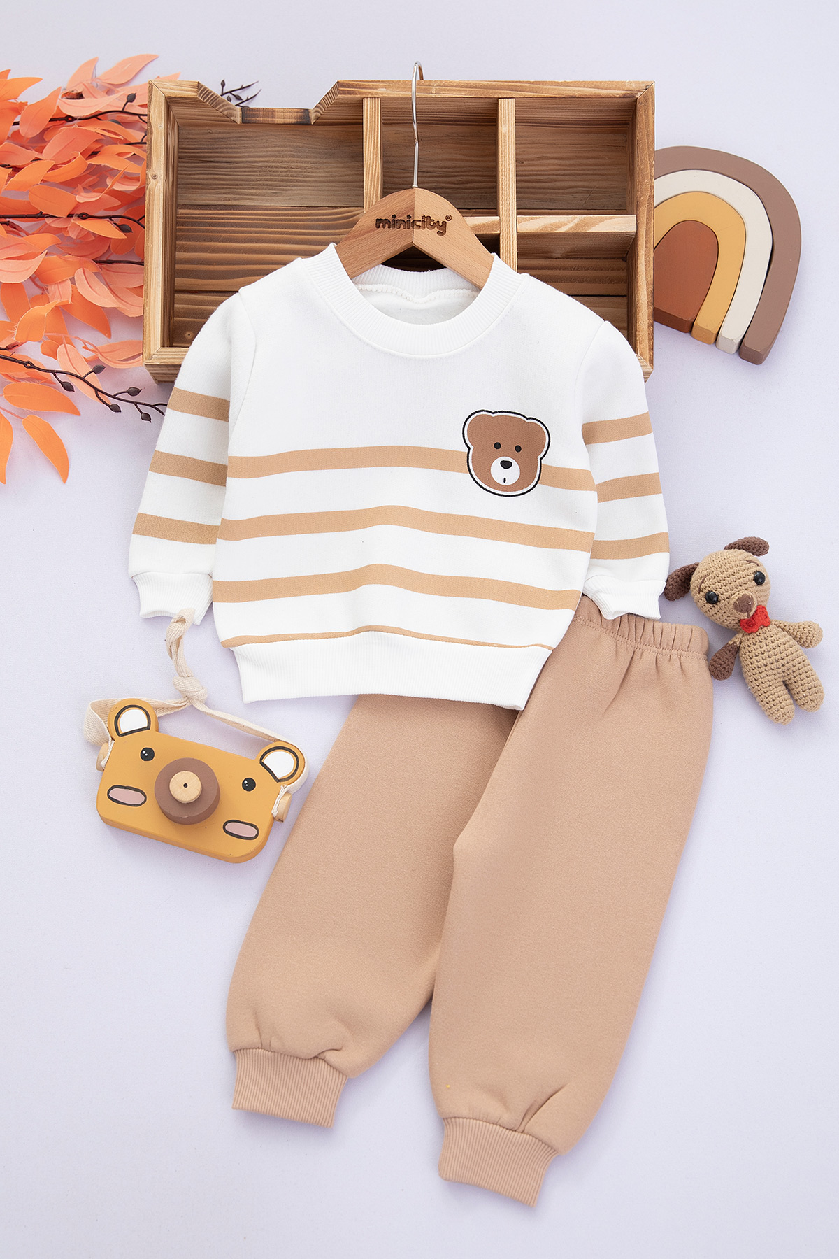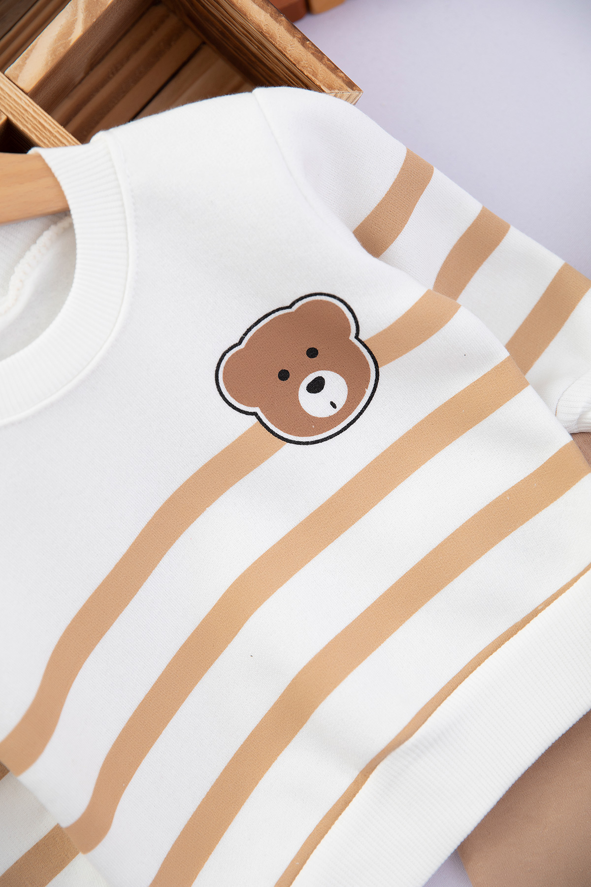 Erkek Çocuk Çizgili Ayılı Baskılı Üçip Takım - 6081 (1-3 Yaş)