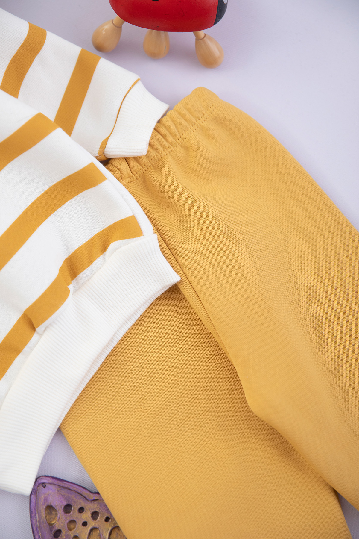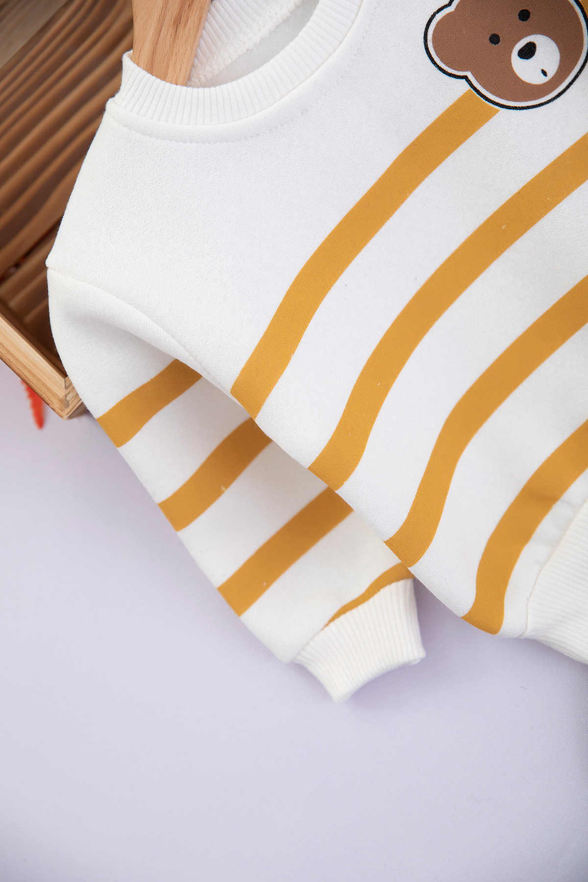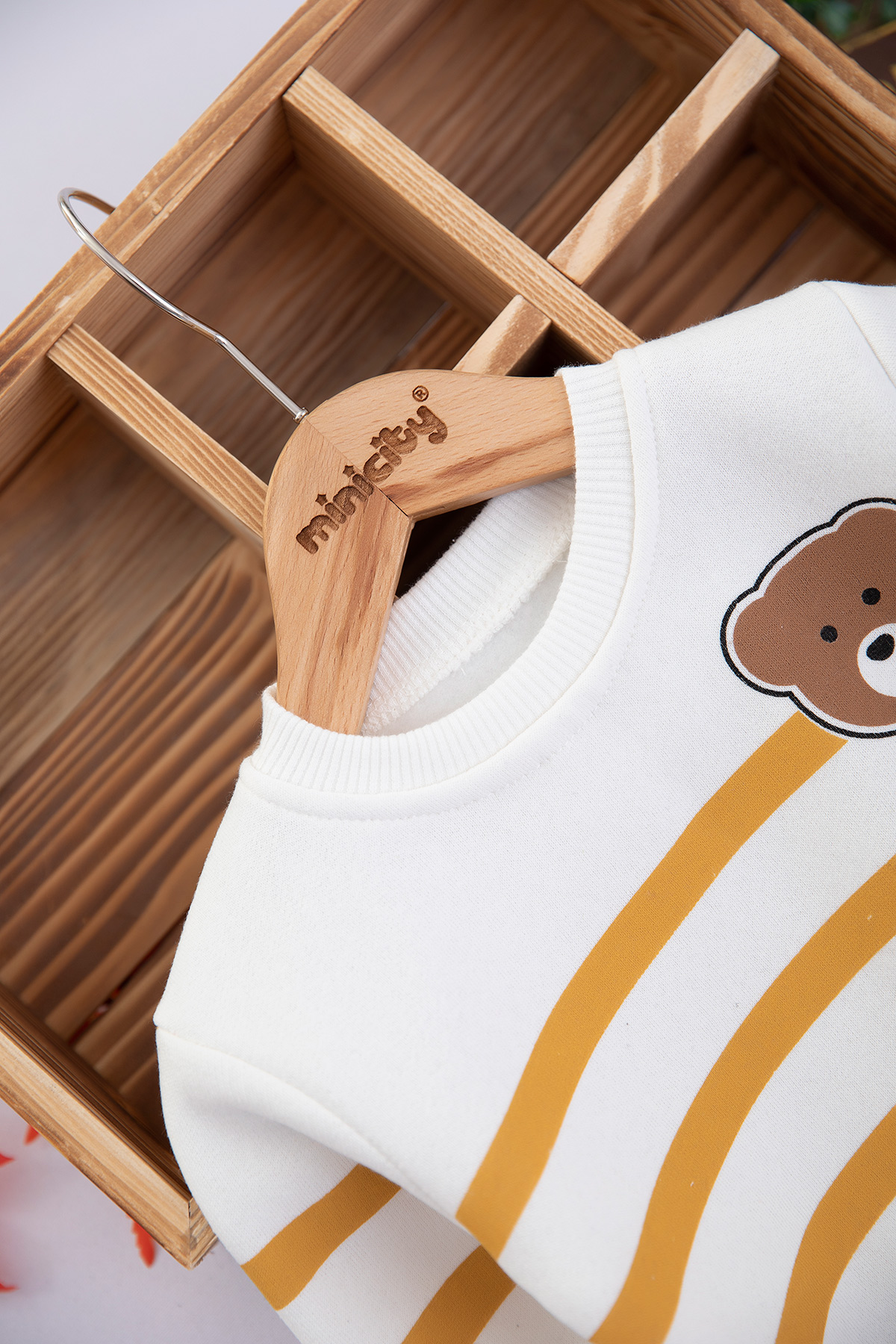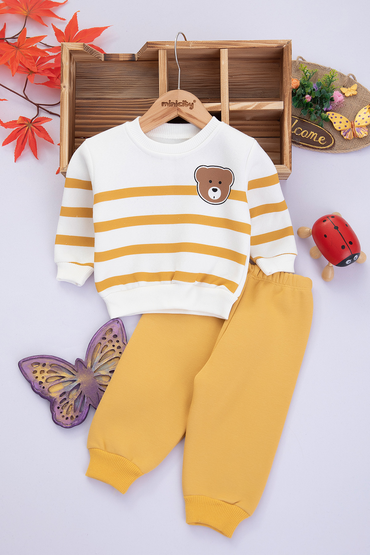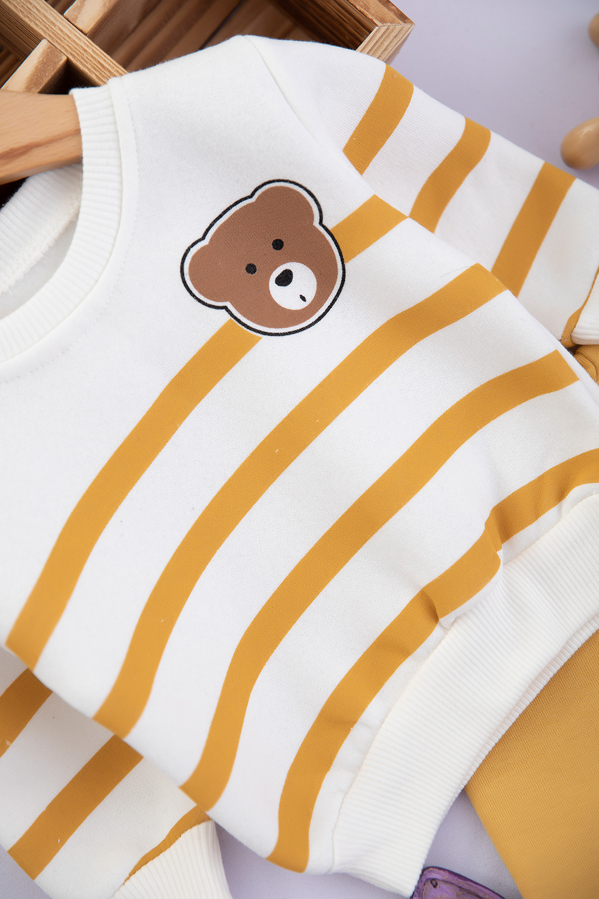 Erkek Çocuk Çizgili Ayılı Baskılı Üçip Takım - 6081 (1-3 Yaş)