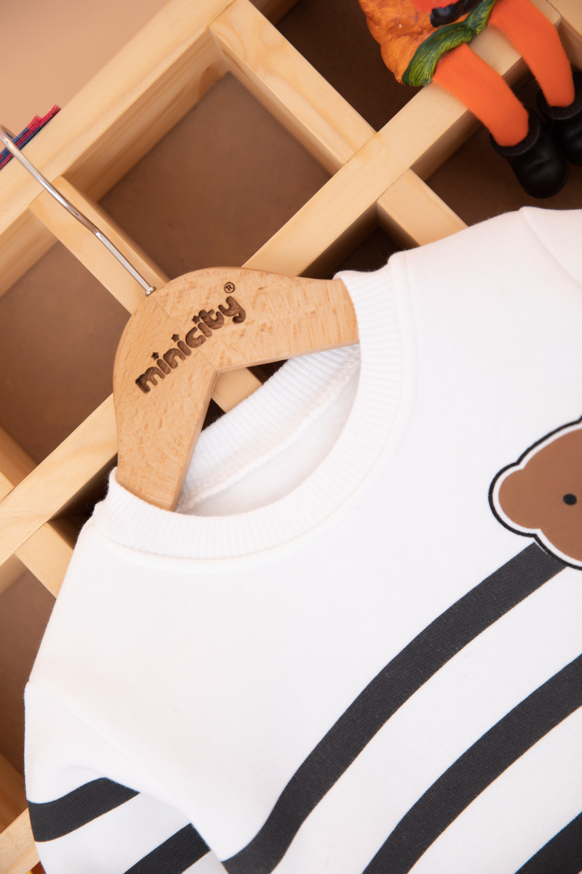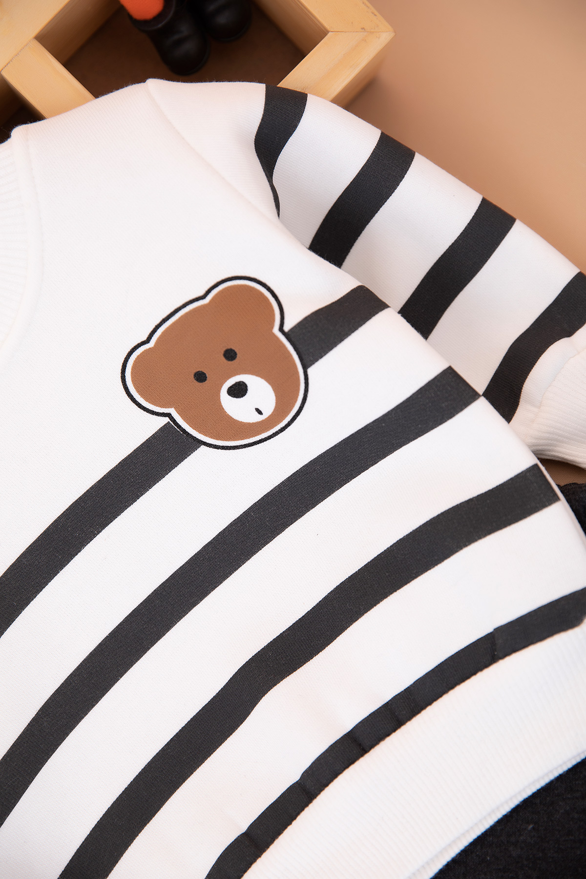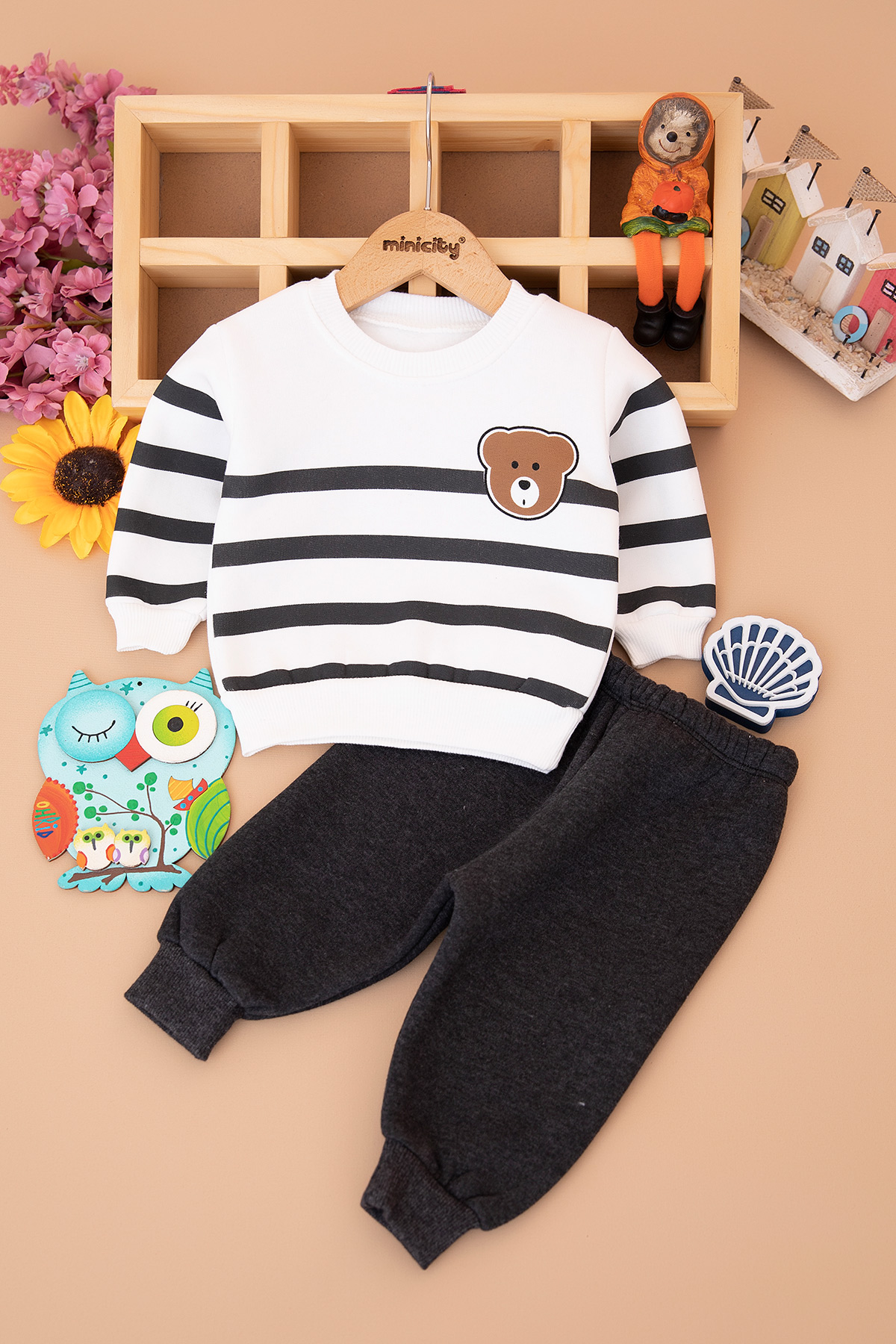 Erkek Çocuk Çizgili Ayılı Baskılı Üçip Takım - 6081 (1-3 Yaş)