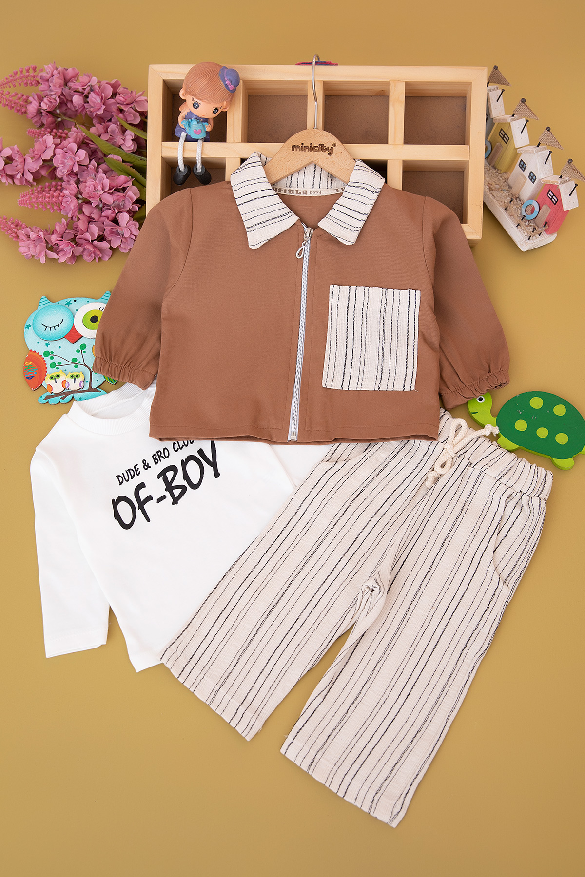Erkek Çocuk Çizgili Cep Montlu Takım - 1755 (1-3 Yaş)