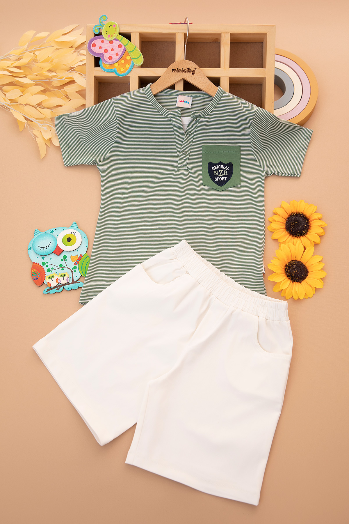 Erkek Çocuk Çizgili Cepli Şortlu Takım - 25176 (7-10 Yaş)