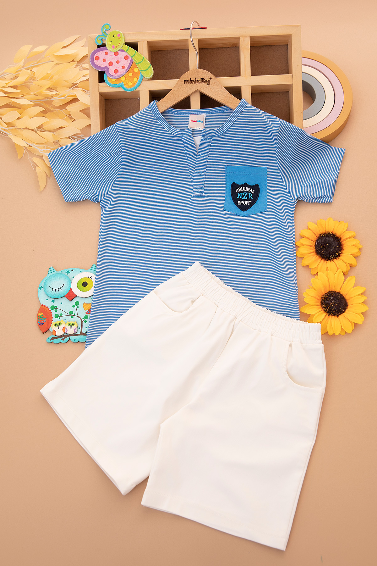 Erkek Çocuk Çizgili Cepli Şortlu Takım - 25176 (7-10 Yaş)