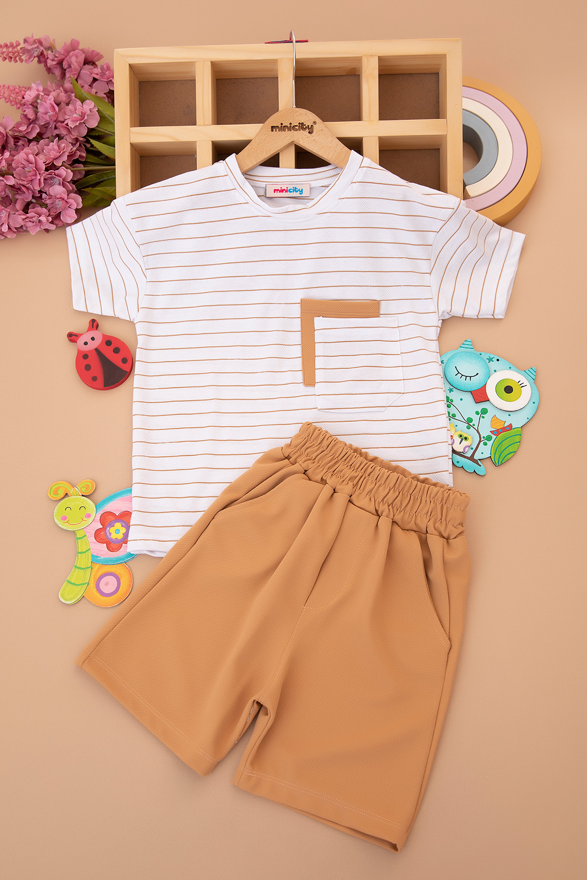 Erkek Çocuk Çizgili Cepli Şortlu Takım - 30525 (5-12 Yaş)