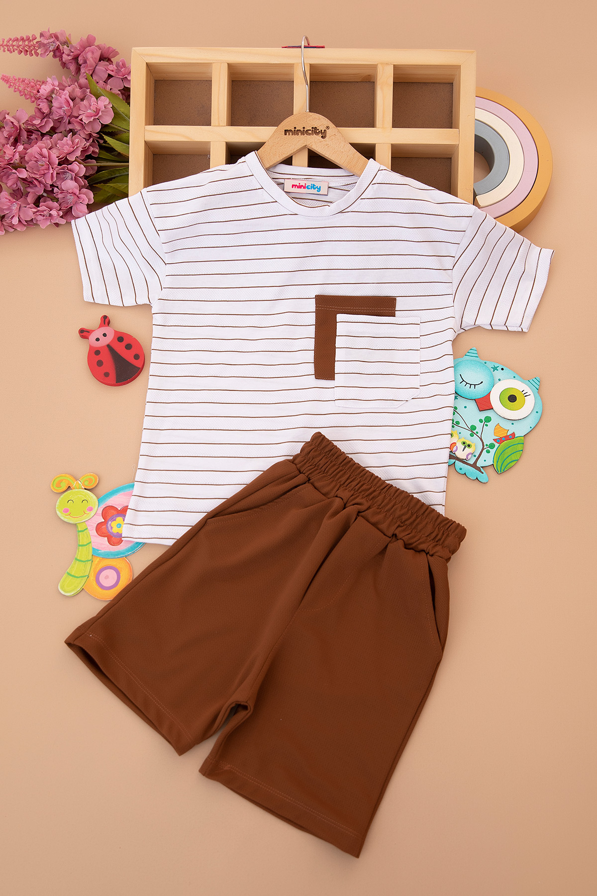 Erkek Çocuk Çizgili Cepli Şortlu Takım - 30525 (5-12 Yaş)