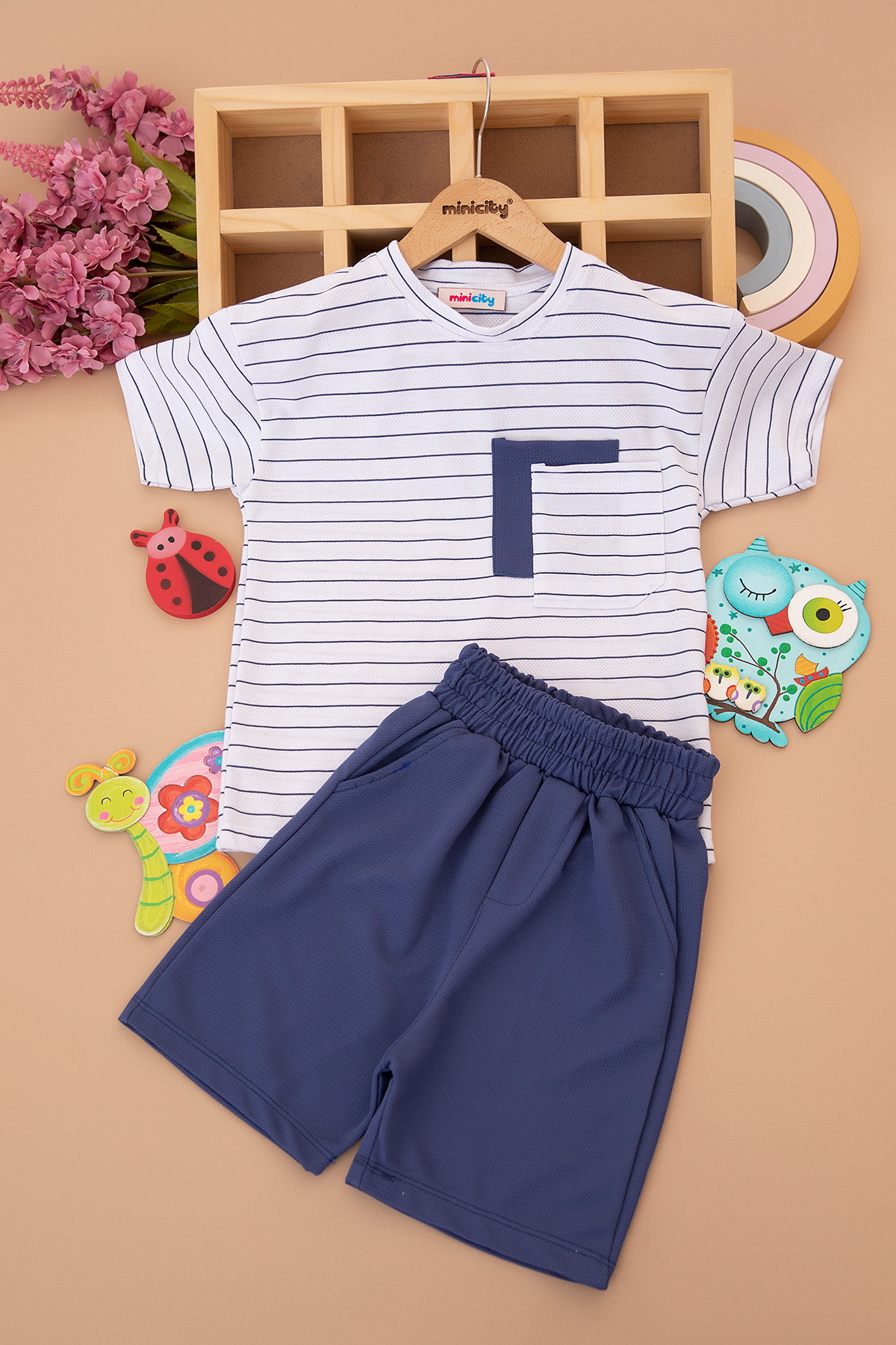 Erkek Çocuk Çizgili Cepli Şortlu Takım - 30525 (5-12 Yaş)