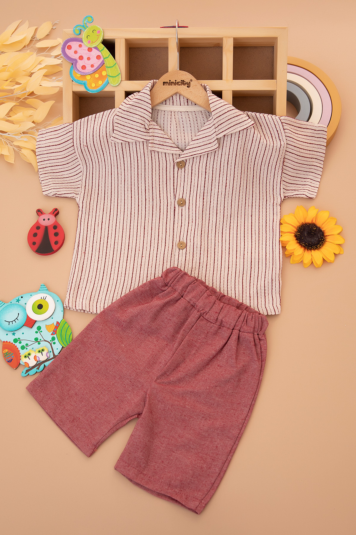 Erkek Çocuk Çizgili Deniz Kenarı Şortlu Takım - 2765 (2-6 Yaş)
