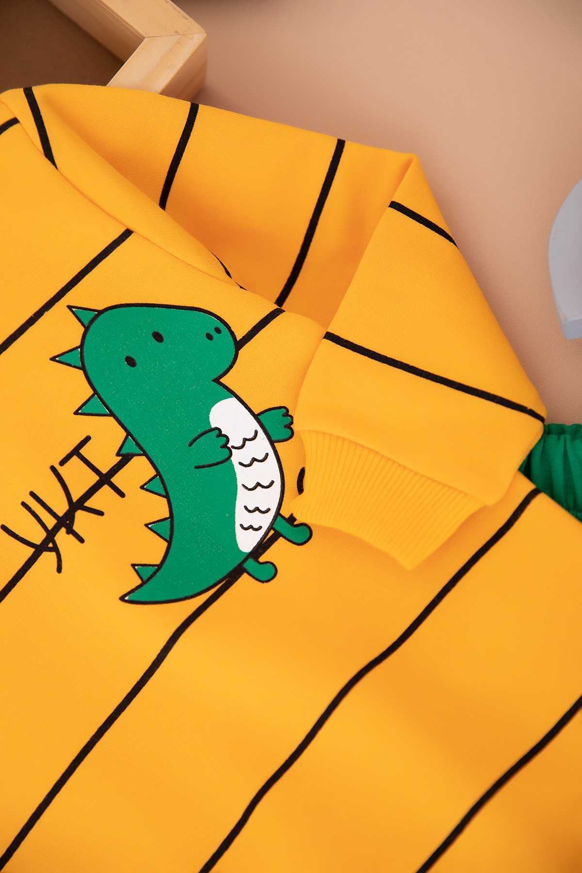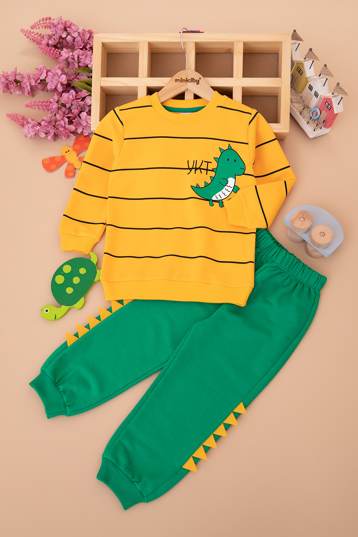 Erkek Çocuk Çizgili Dino Baskılı Takım (3-10 Yaş)
