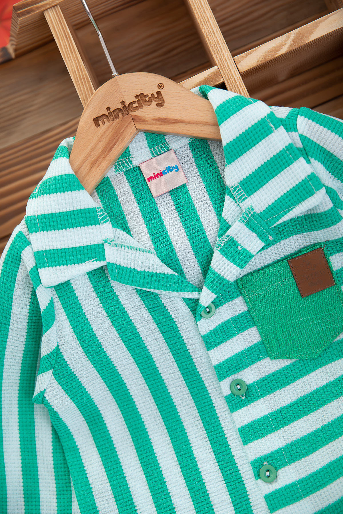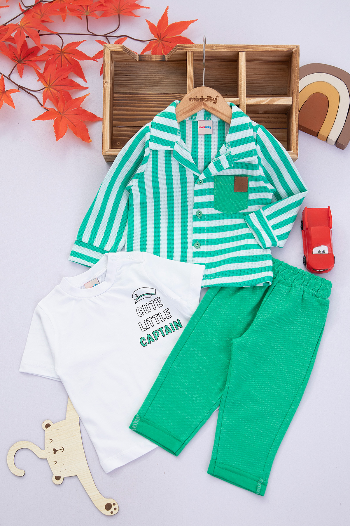 Erkek Çocuk Çizgili Gömlek Petek Üçlü Takım - 25099 (3-6 Yaş)