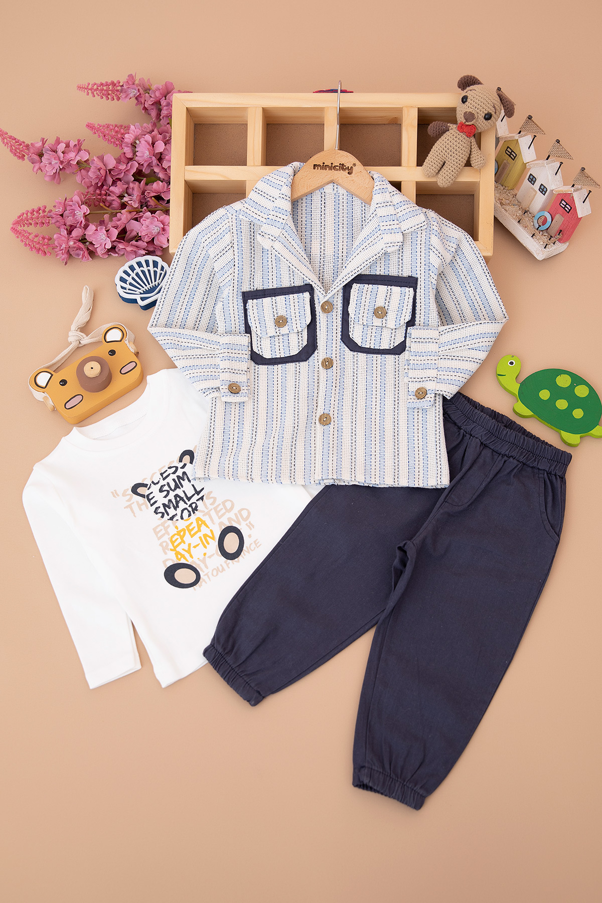 Erkek Çocuk Çizgili Gömlekli Takım - 0754 (1-5 Yaş)
