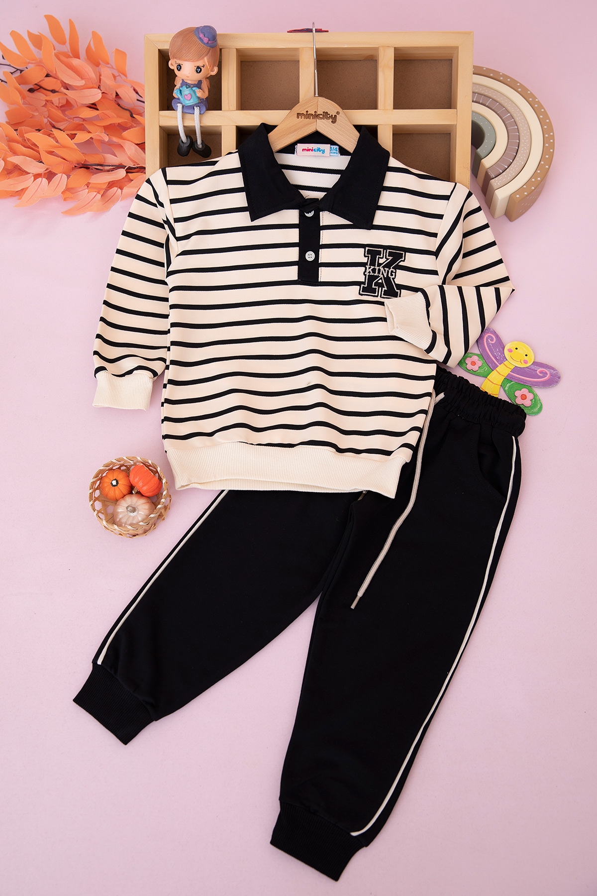 Erkek Çocuk Çizgili King Nakışlı Cepli Takım (3-10 Yaş)