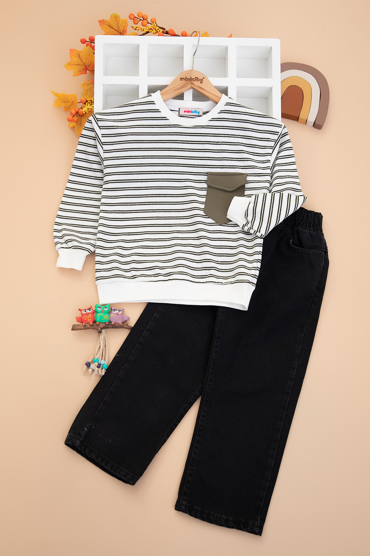 Erkek Çocuk Çizgili Kot Pantolon Takım - 70260 (5-12 Yaş)