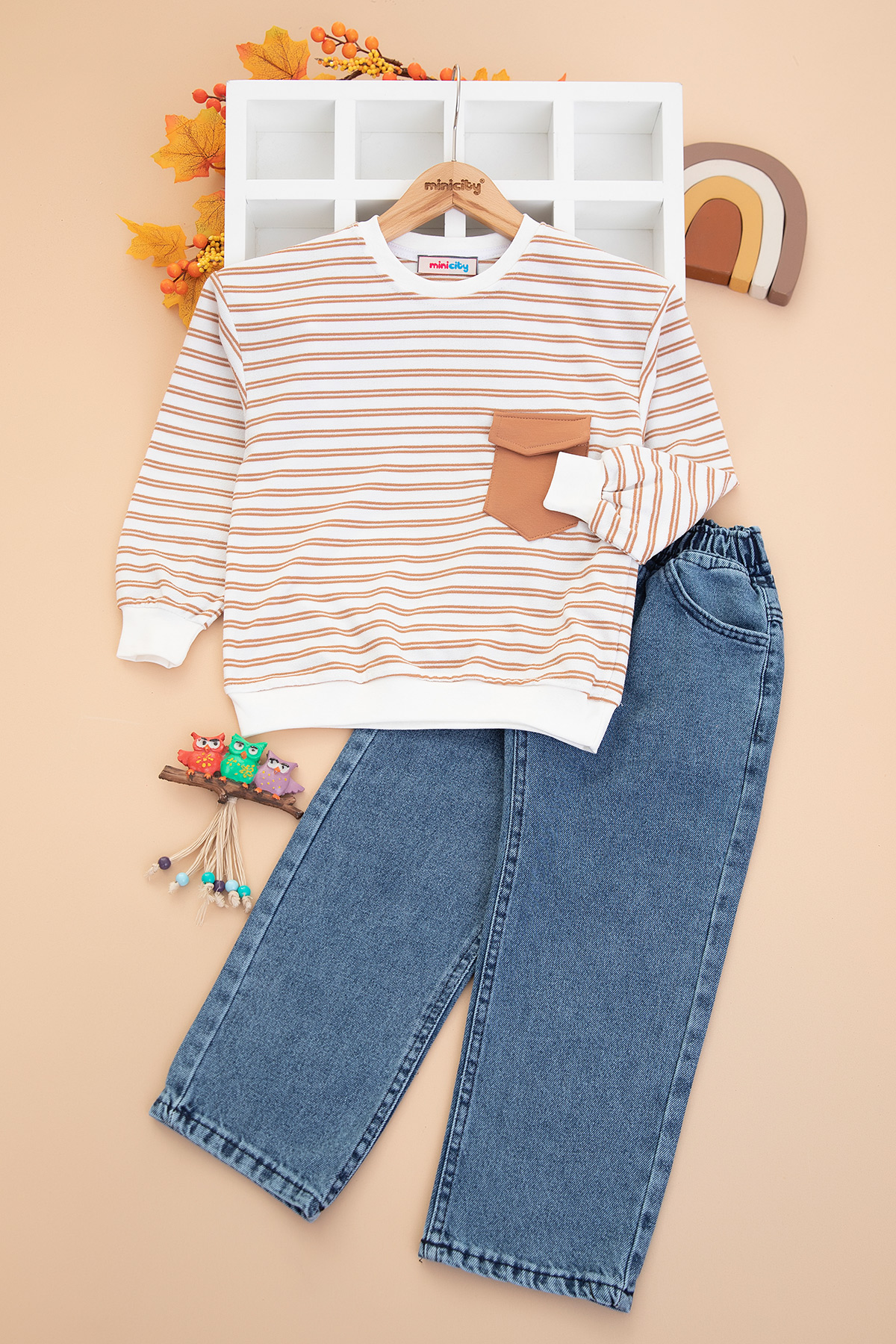 Erkek Çocuk Çizgili Kot Pantolon Takım - 70260 (5-12 Yaş)