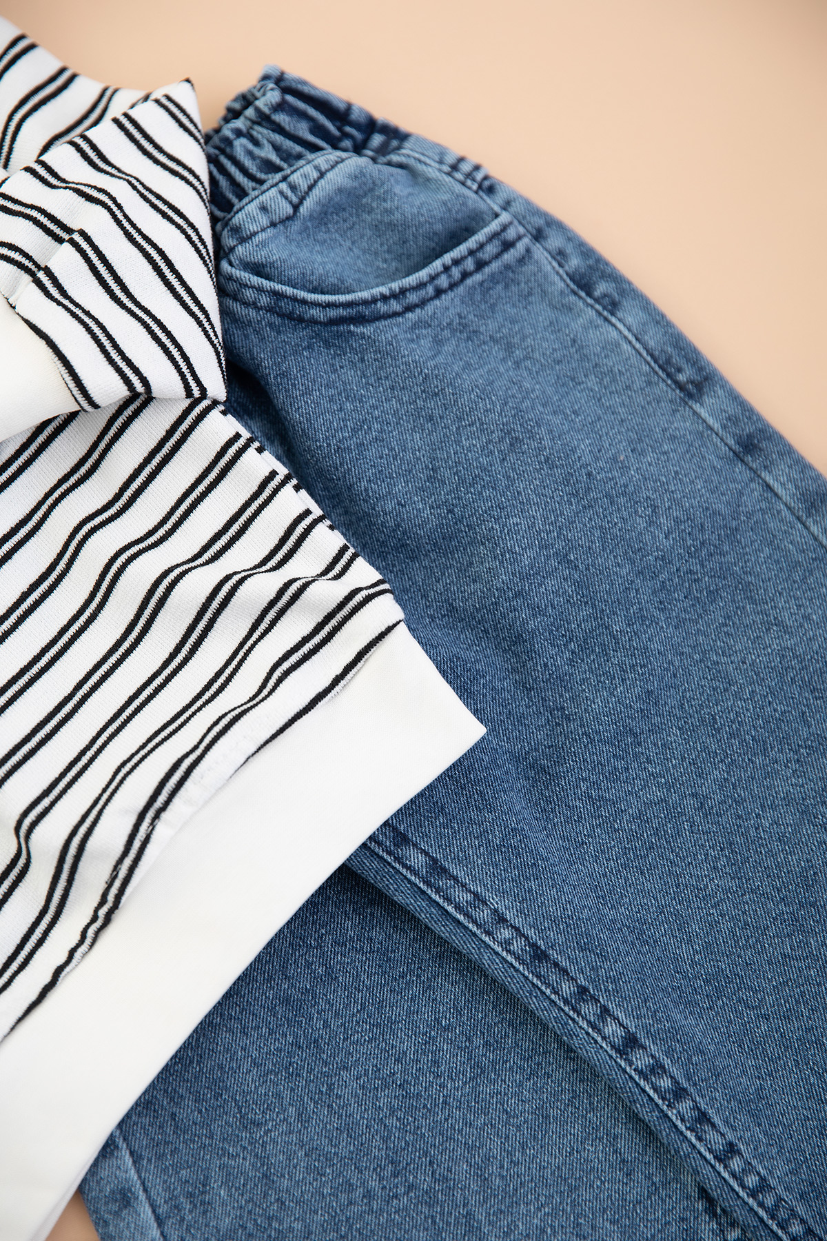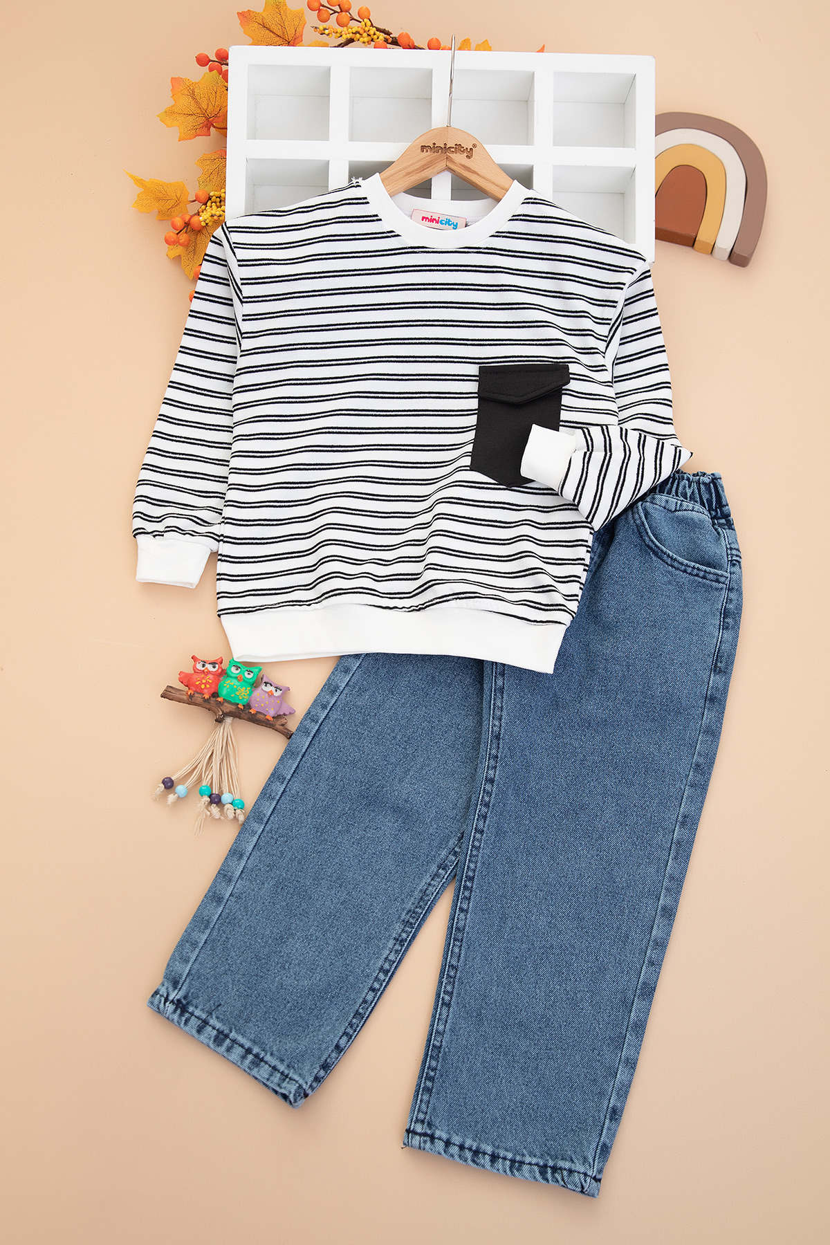 Erkek Çocuk Çizgili Kot Pantolon Takım - 70260 (5-12 Yaş)