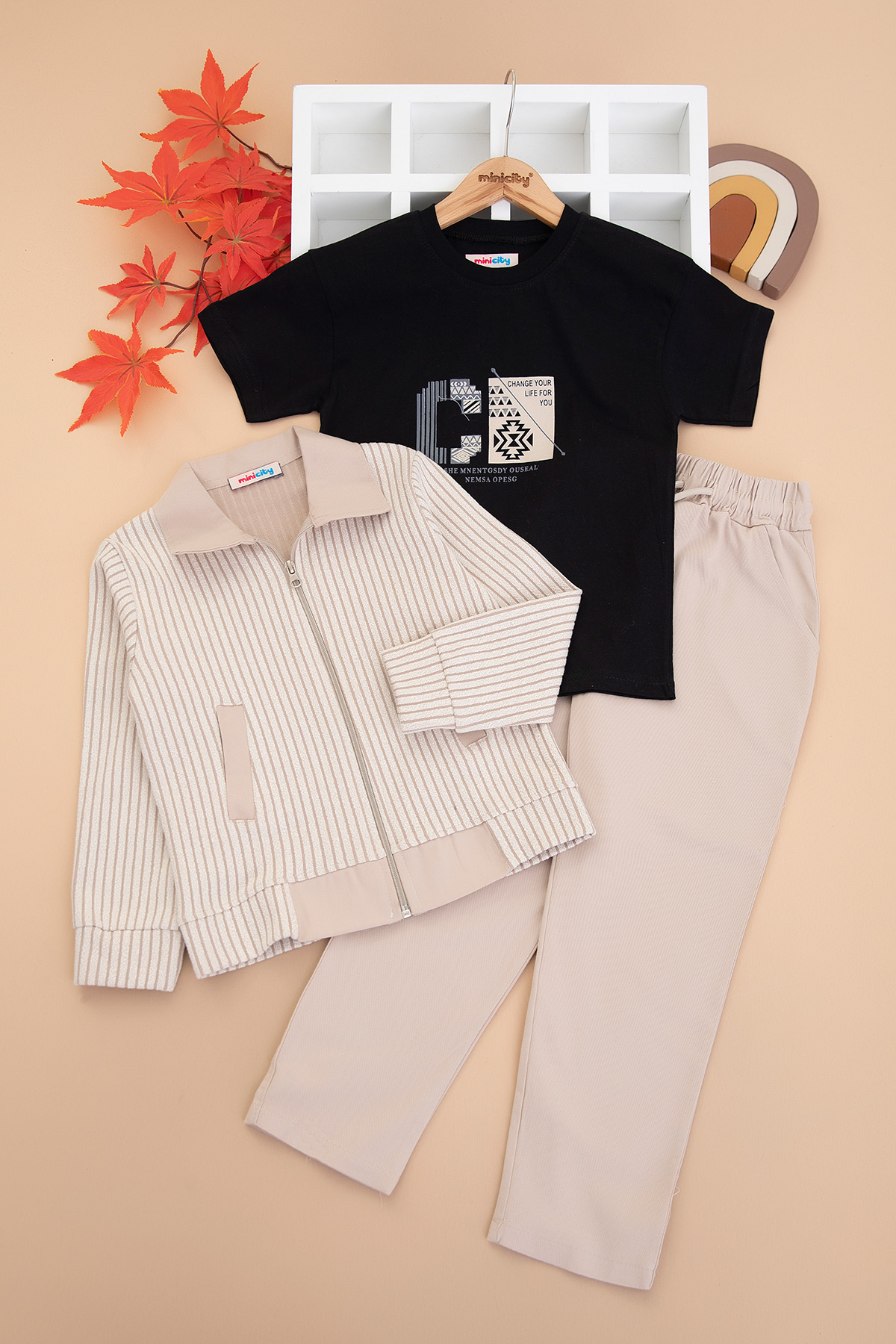 Erkek Çocuk Çizgili Montlu Takım - 70510 (5-12 Yaş)