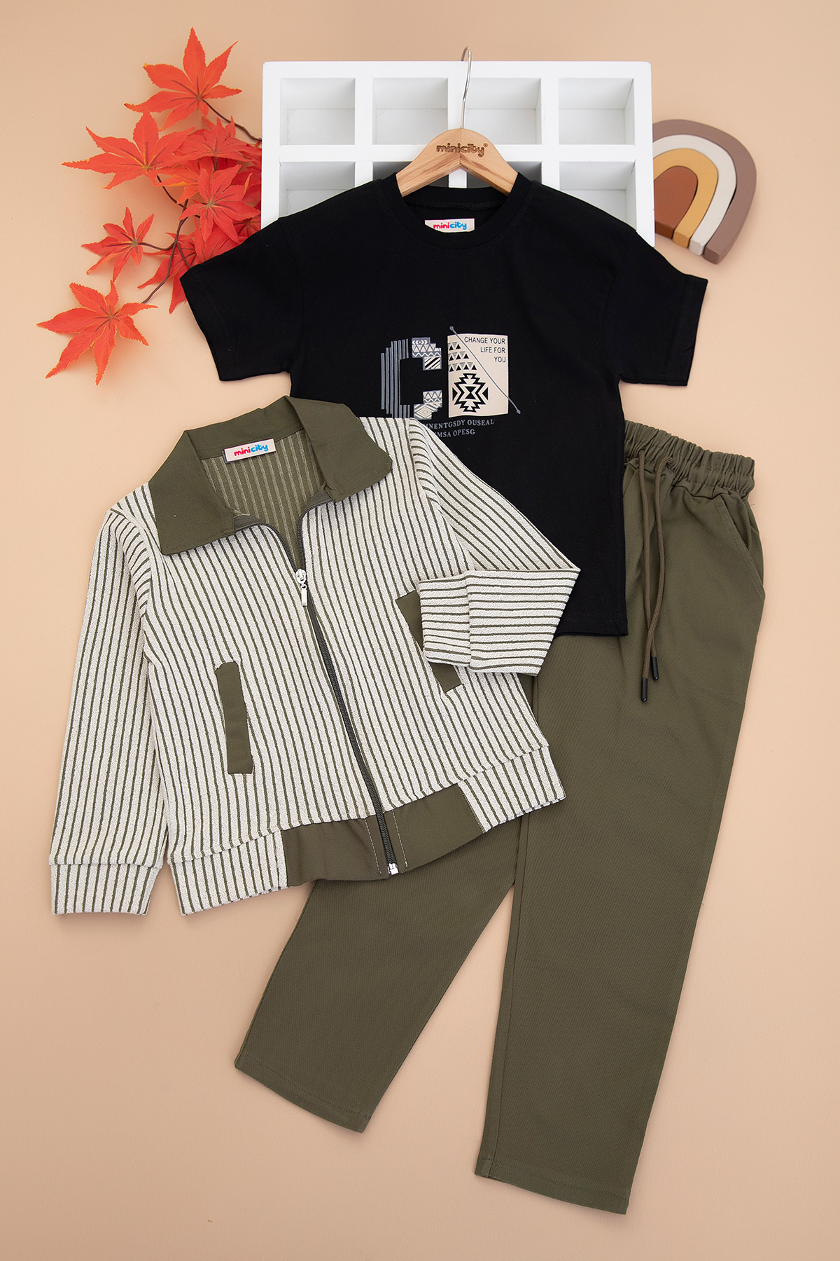 Erkek Çocuk Çizgili Montlu Takım - 70510 (5-12 Yaş)