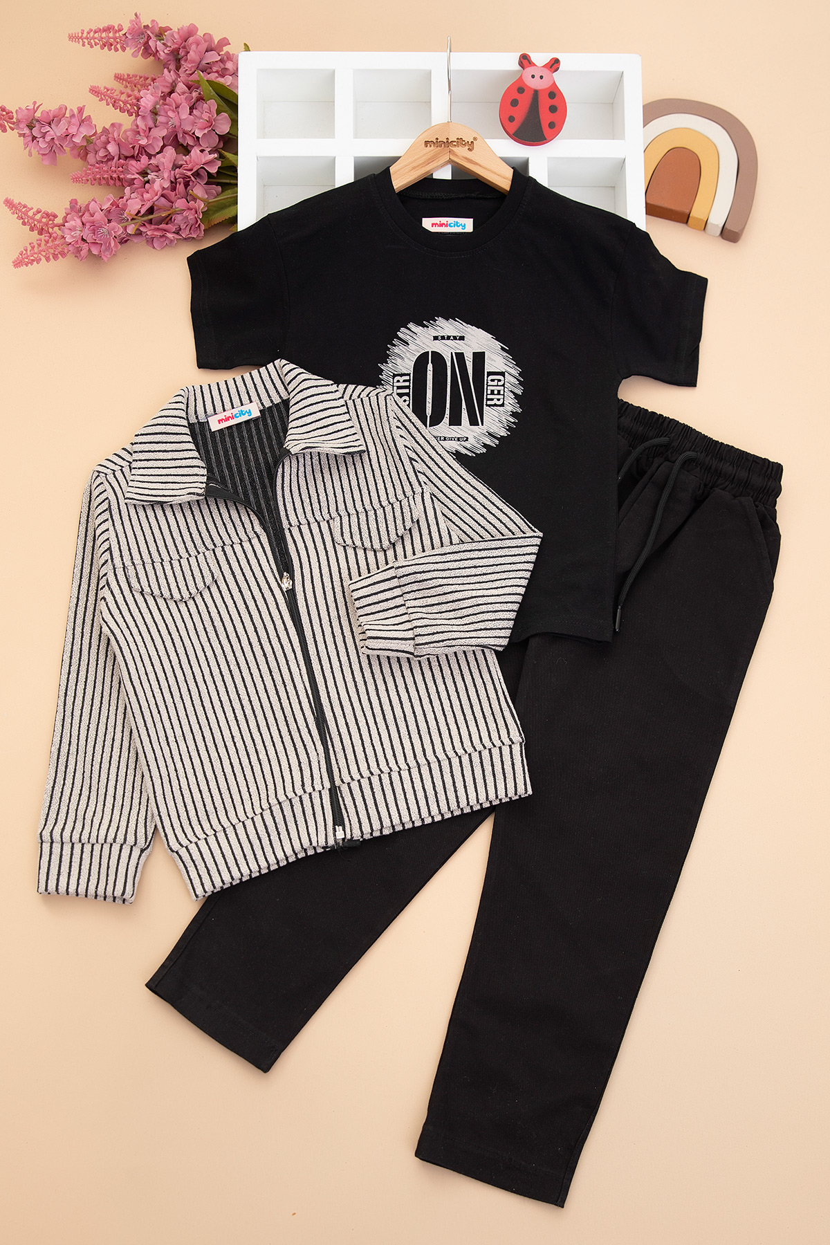 Erkek Çocuk Çizgili Montlu Takım - 70565 (5-12 Yaş)