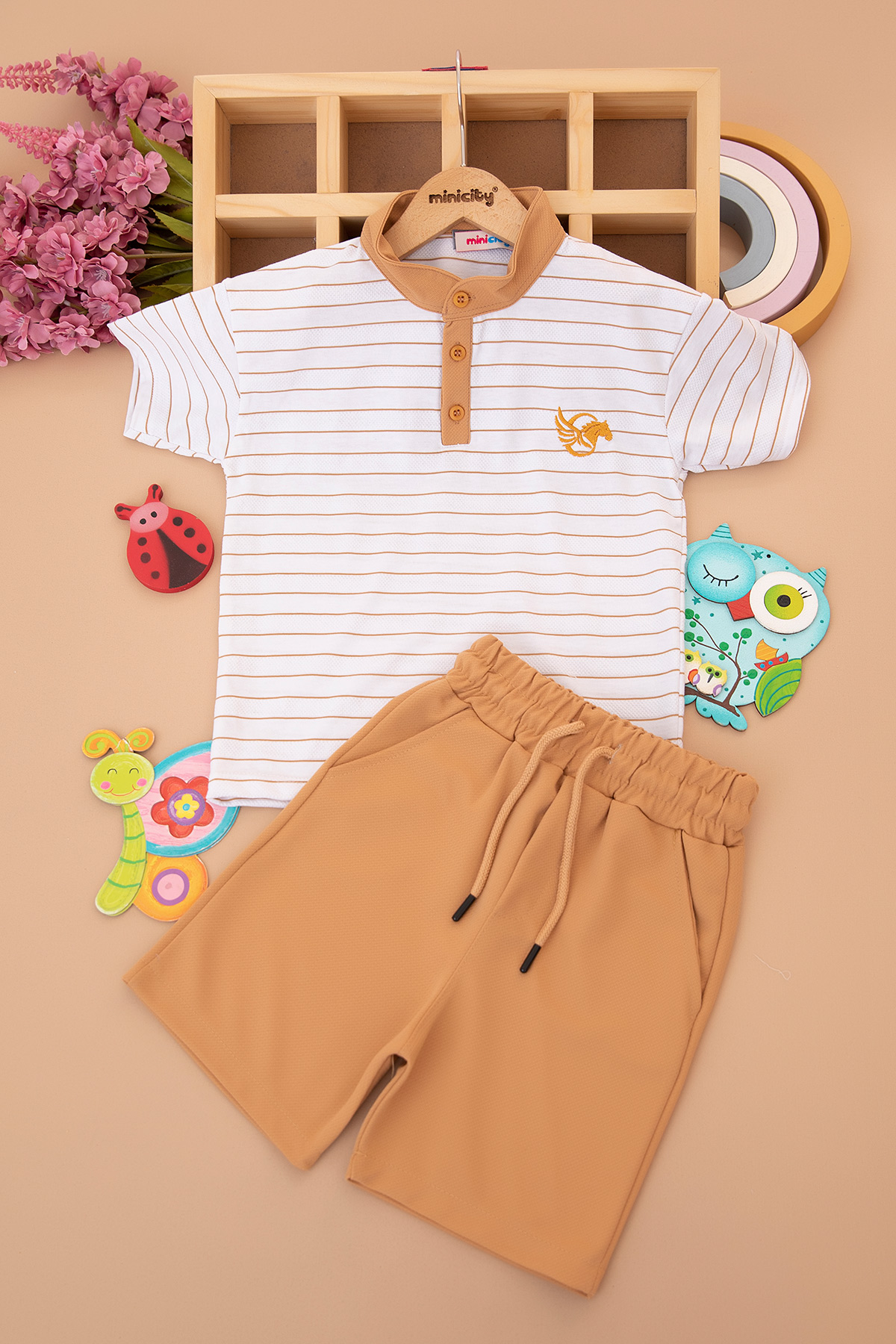 Erkek Çocuk Çizgili Nakışlı Şortlu Takım - 30595 (5-12 Yaş)
