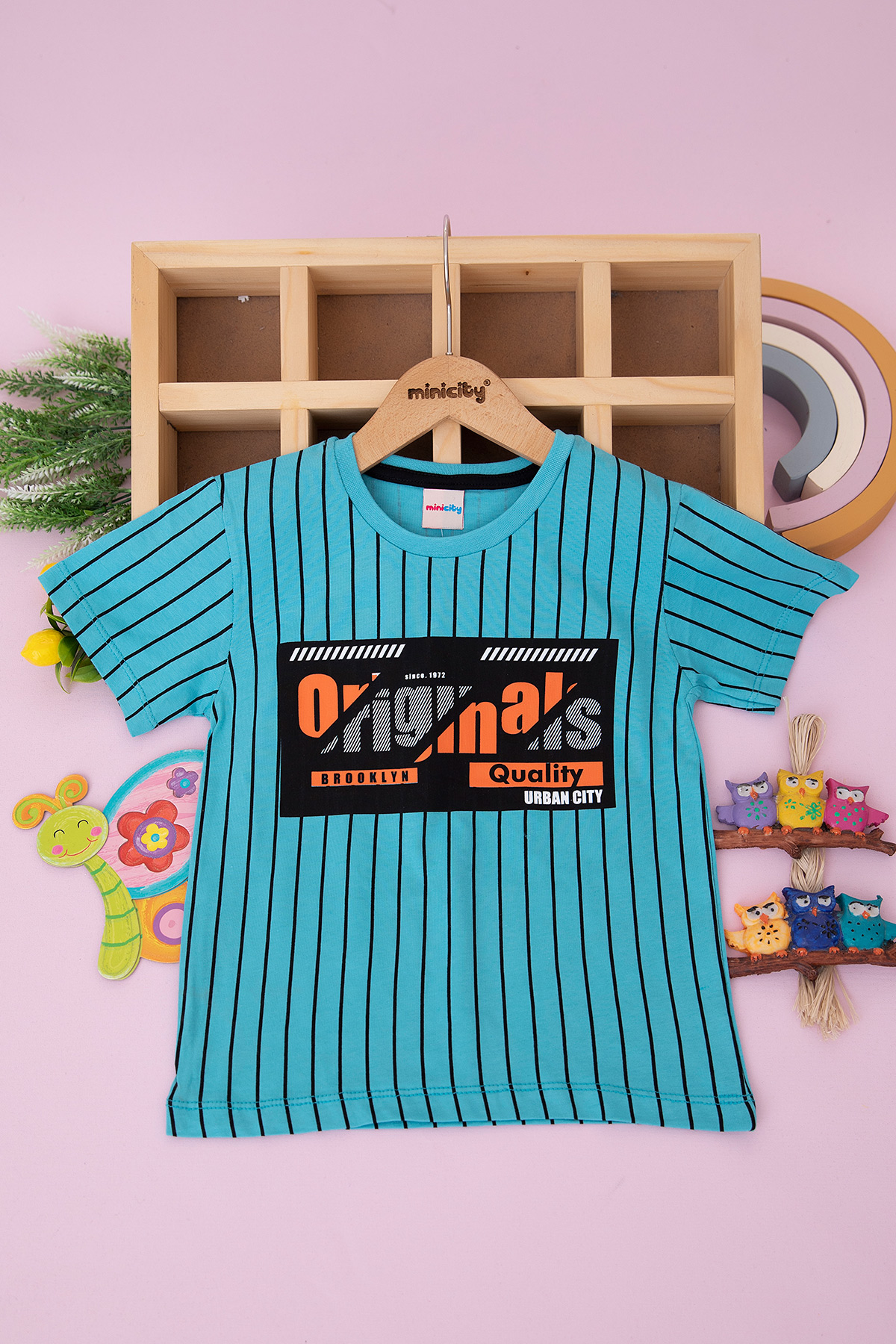 Erkek Çocuk Çizgili Originals Baskılı T-Shirt - 22431 (4-8 Yaş)