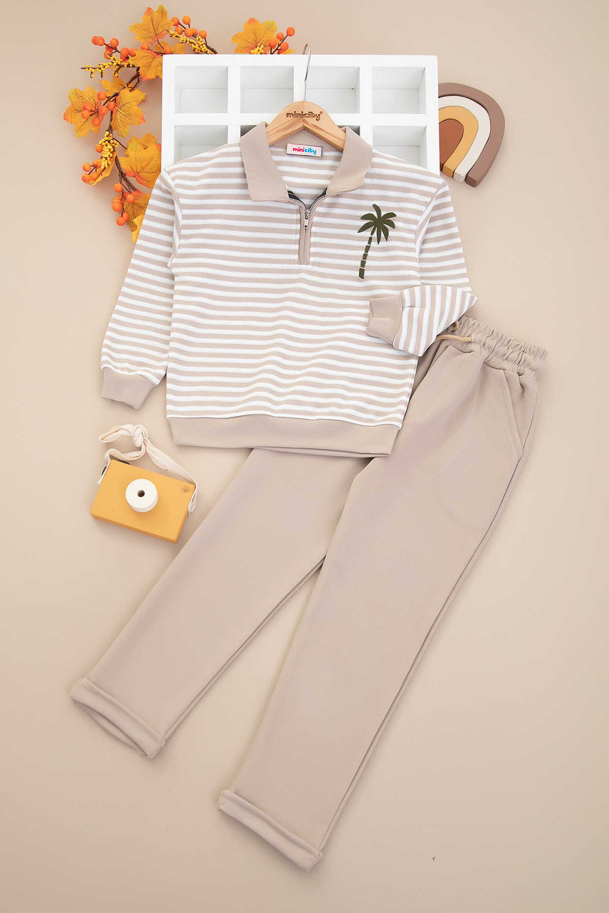 Erkek Çocuk Çizgili Palmiye Nakışlı Takım - 70205 (5-12 Yaş)