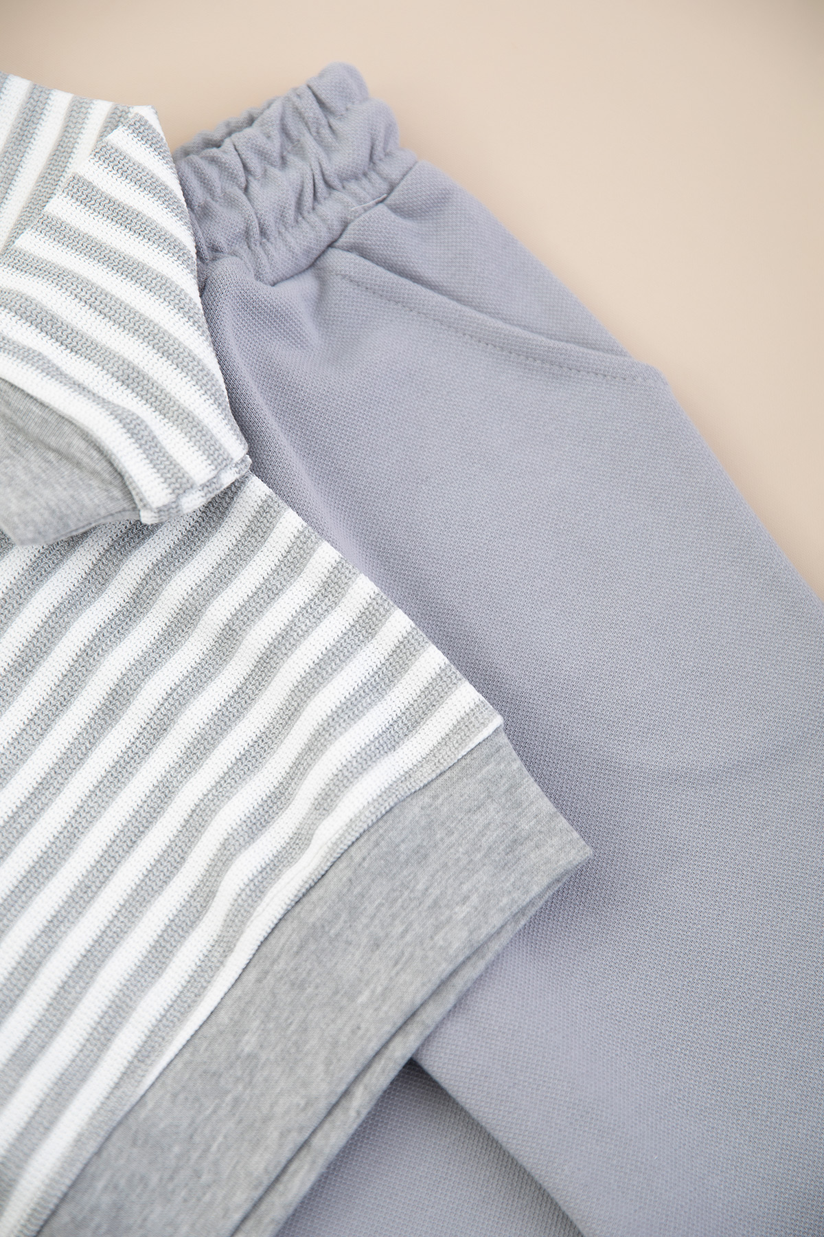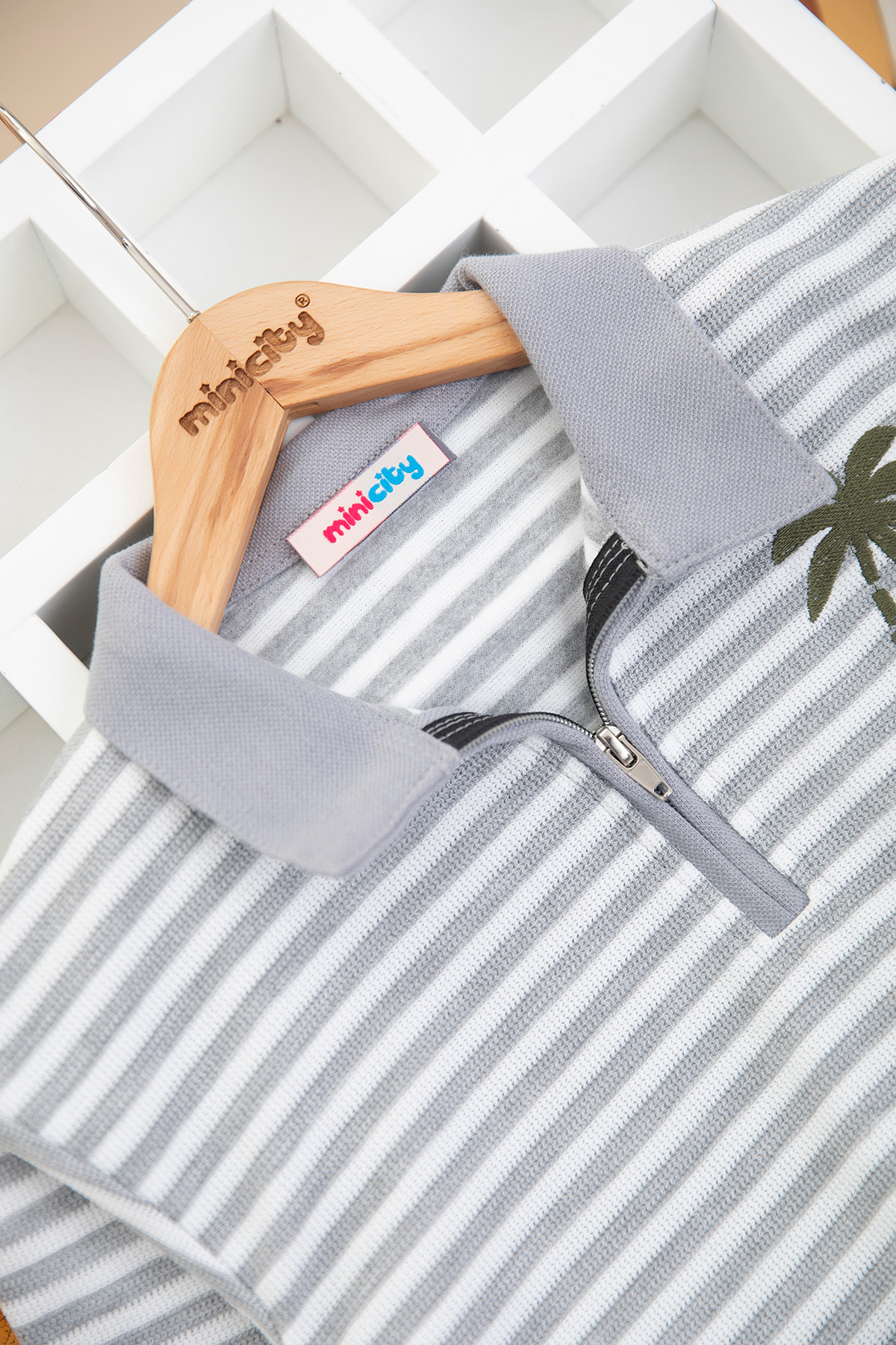 Erkek Çocuk Çizgili Palmiye Nakışlı Takım - 70205 (5-12 Yaş)