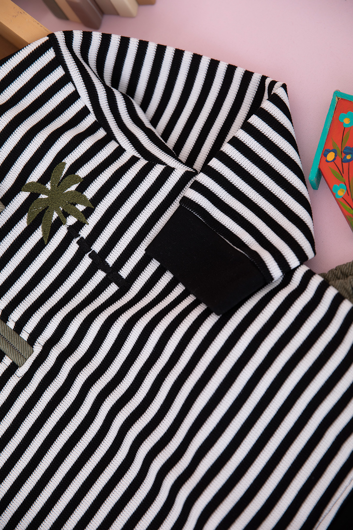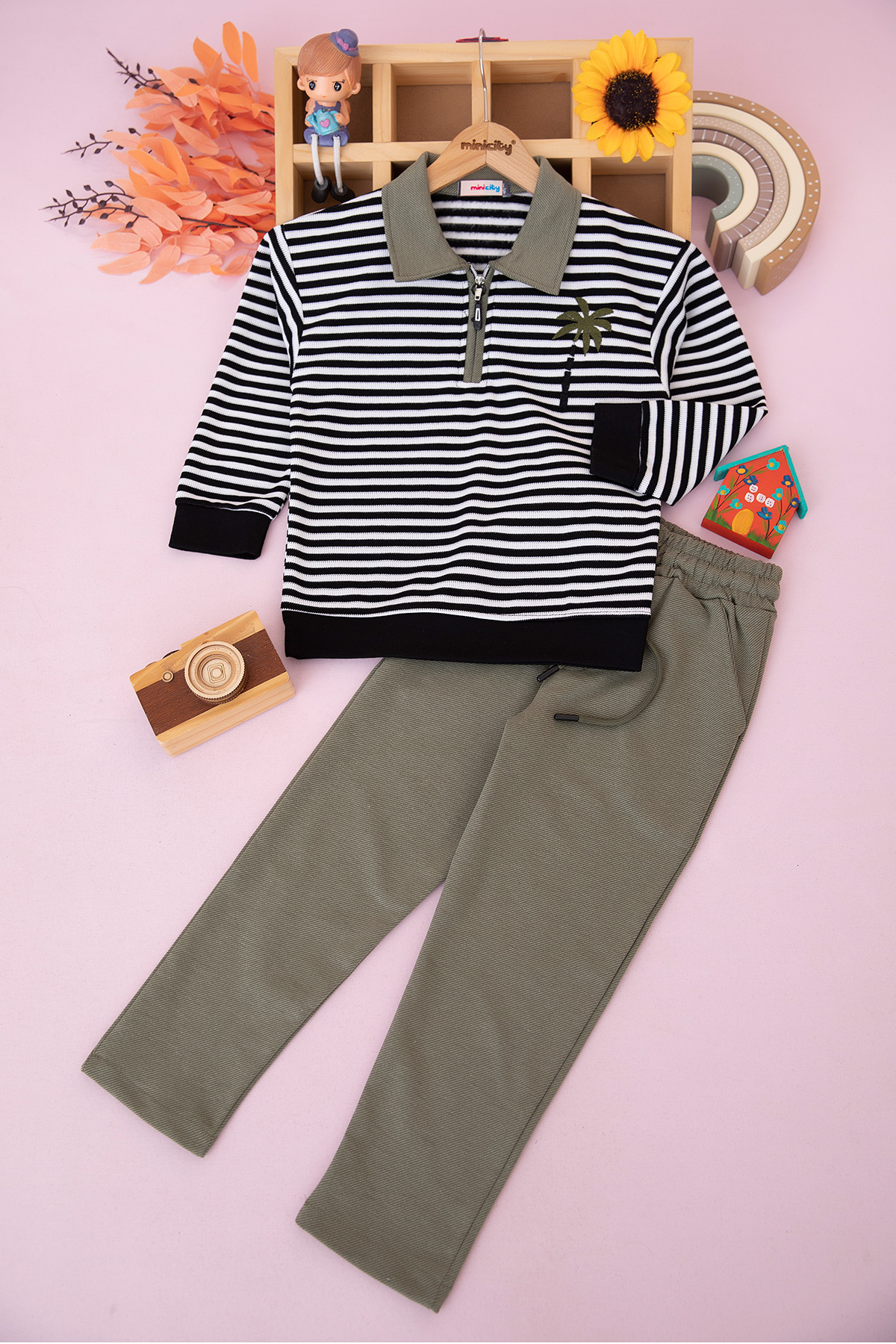 Erkek Çocuk Çizgili Palmiye Nakışlı Takım - 70205 (5-12 Yaş)