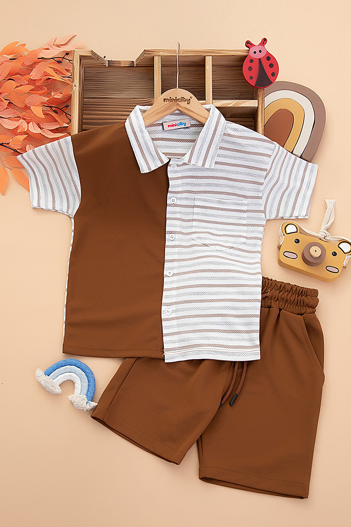 Erkek Çocuk Çizgili Parçalı Kaprili Takım - 30560 (5-12 Yaş)