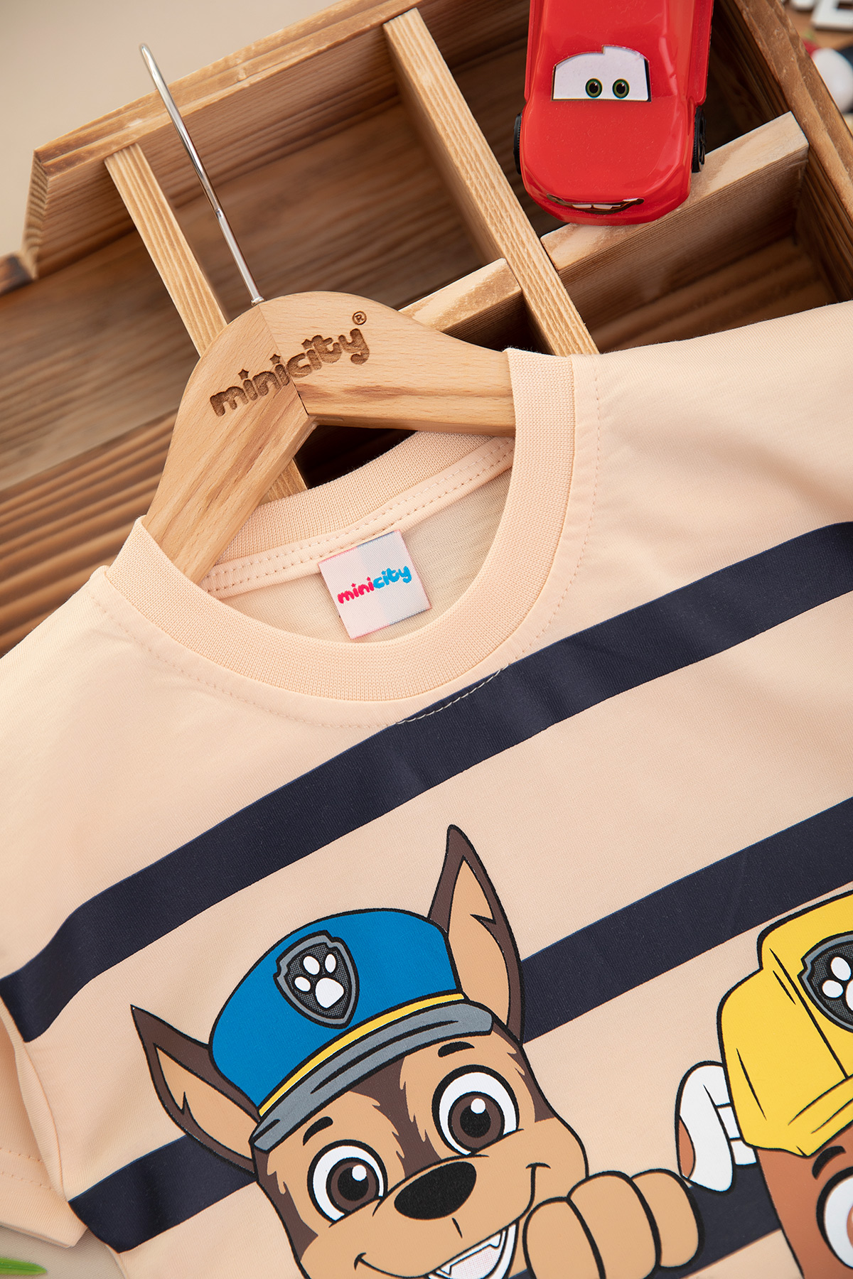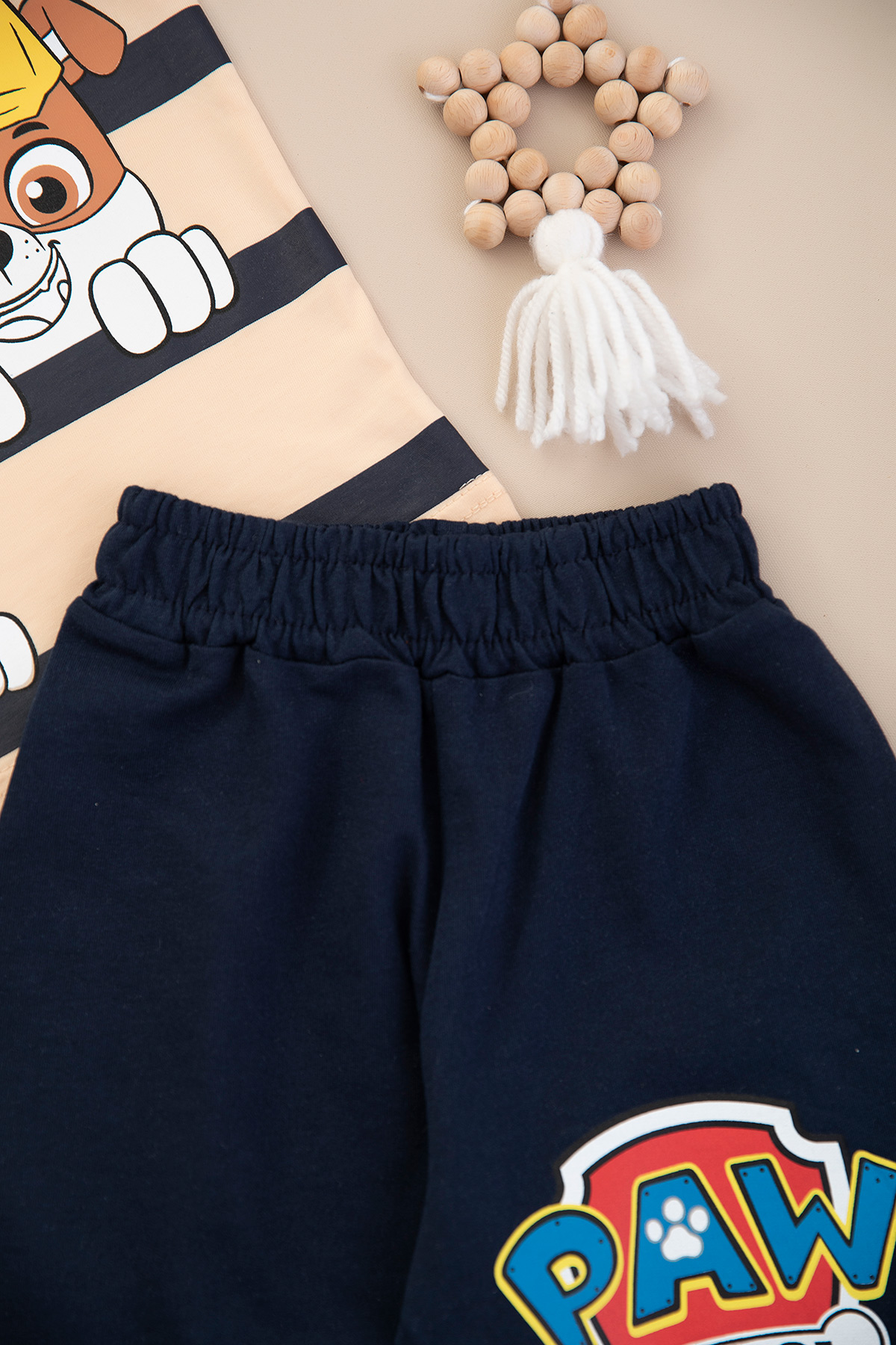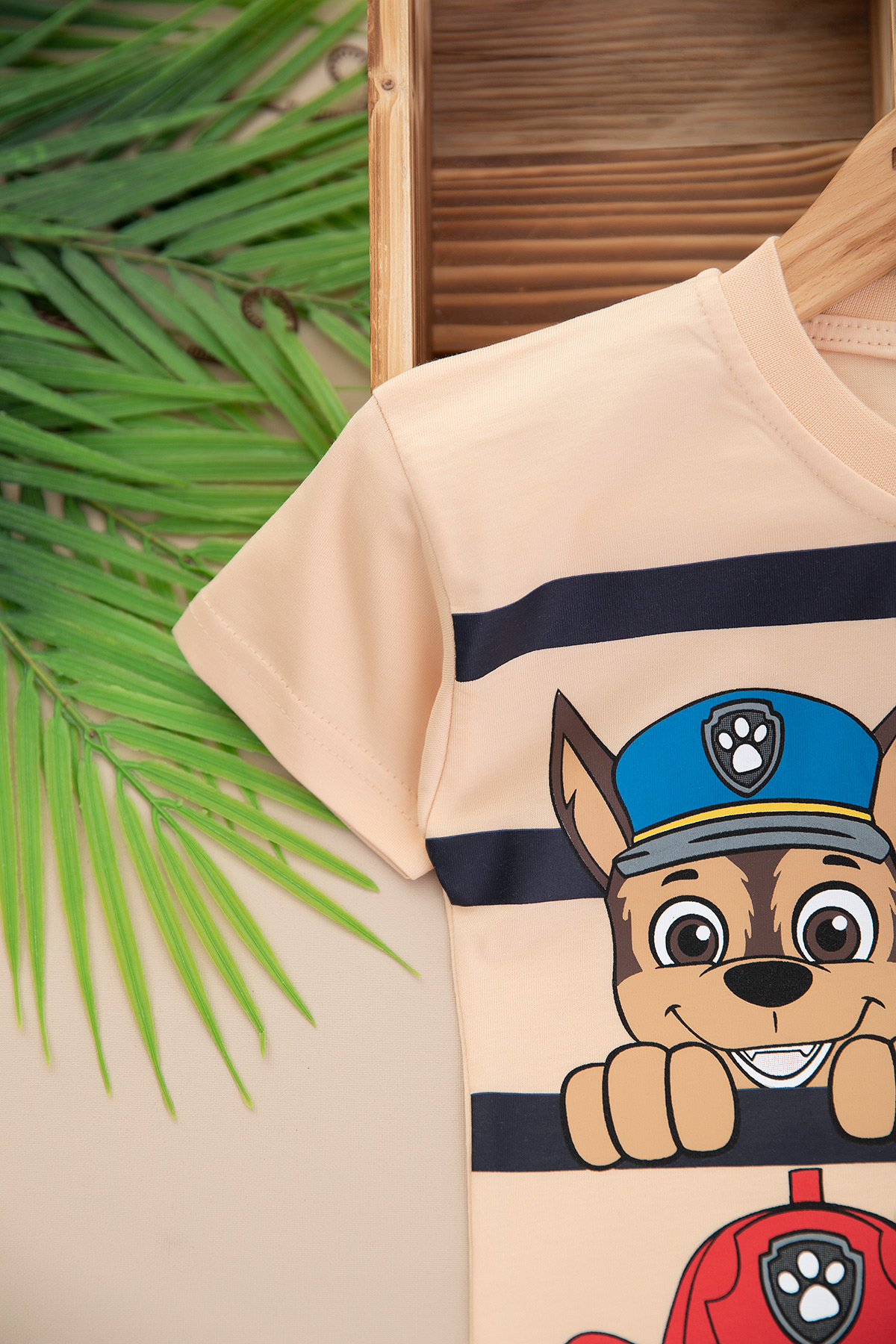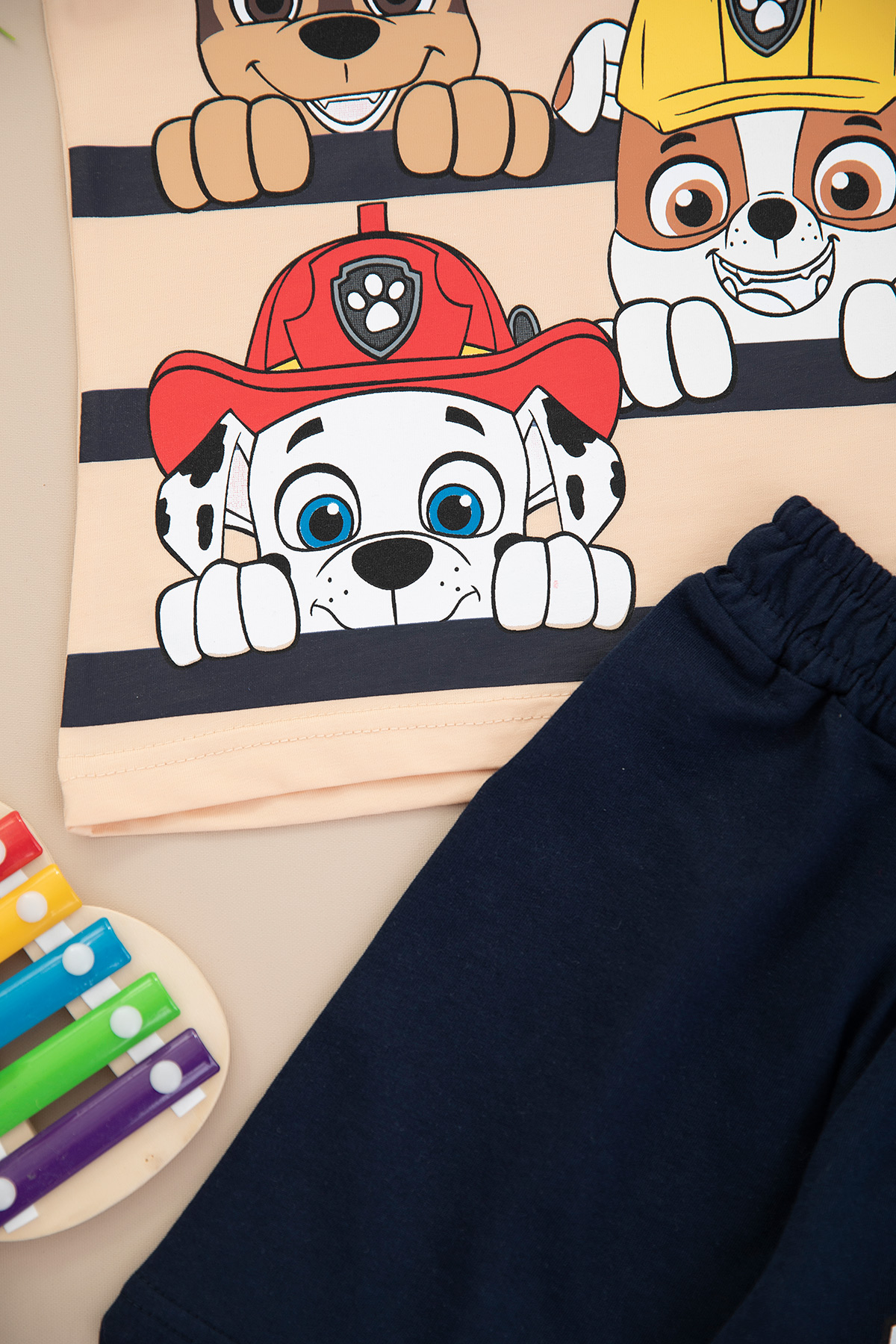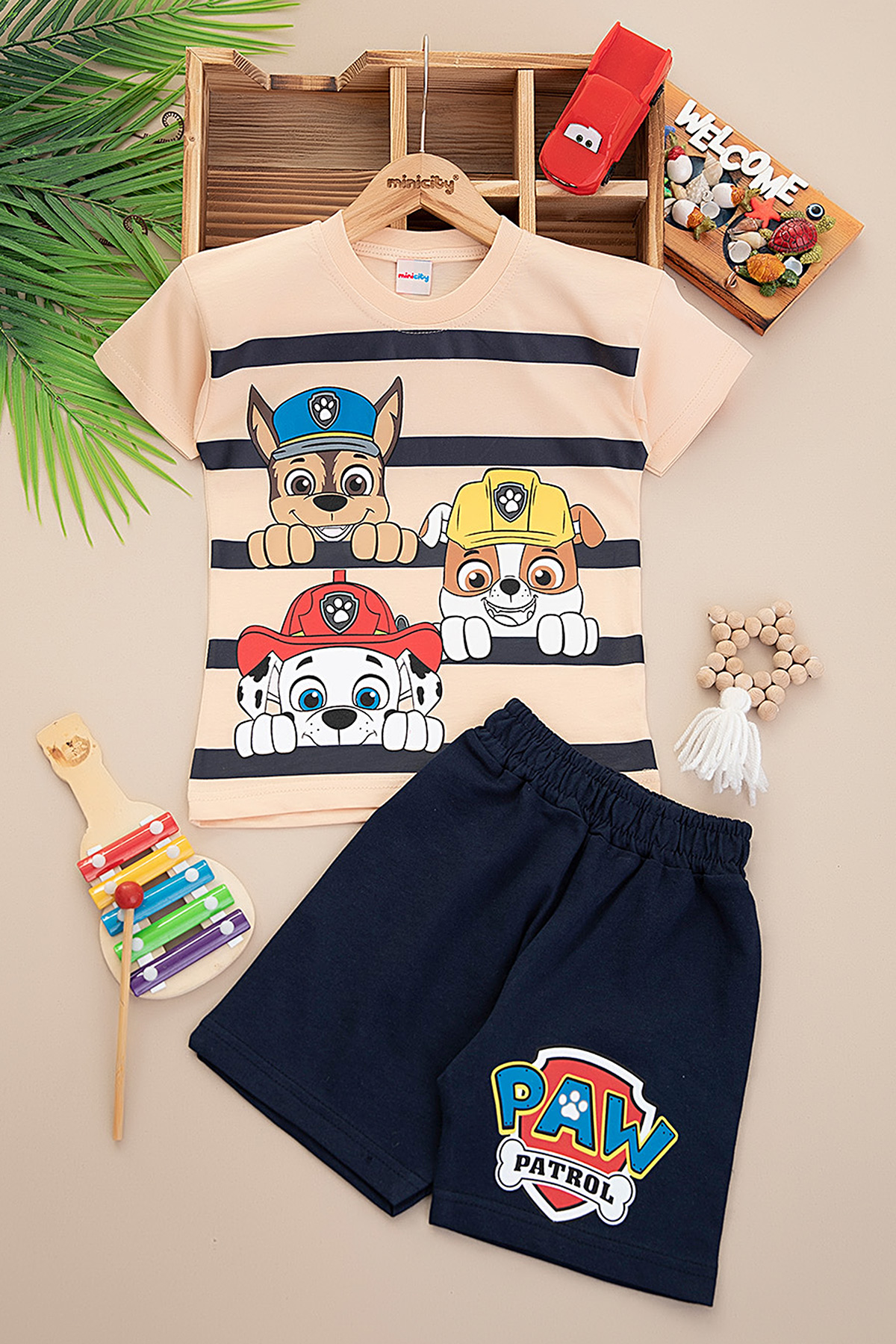 Erkek Çocuk Çizgili Paw Patrol Baskılı Şortlu Takım (4-10 Yaş)