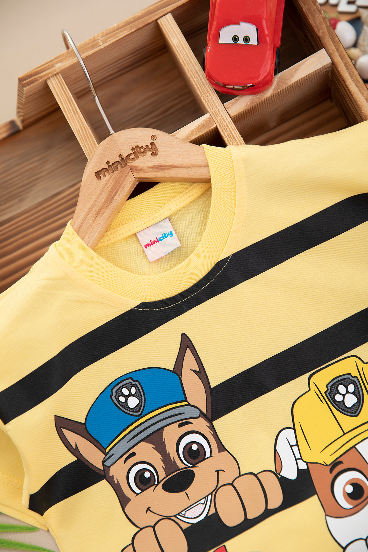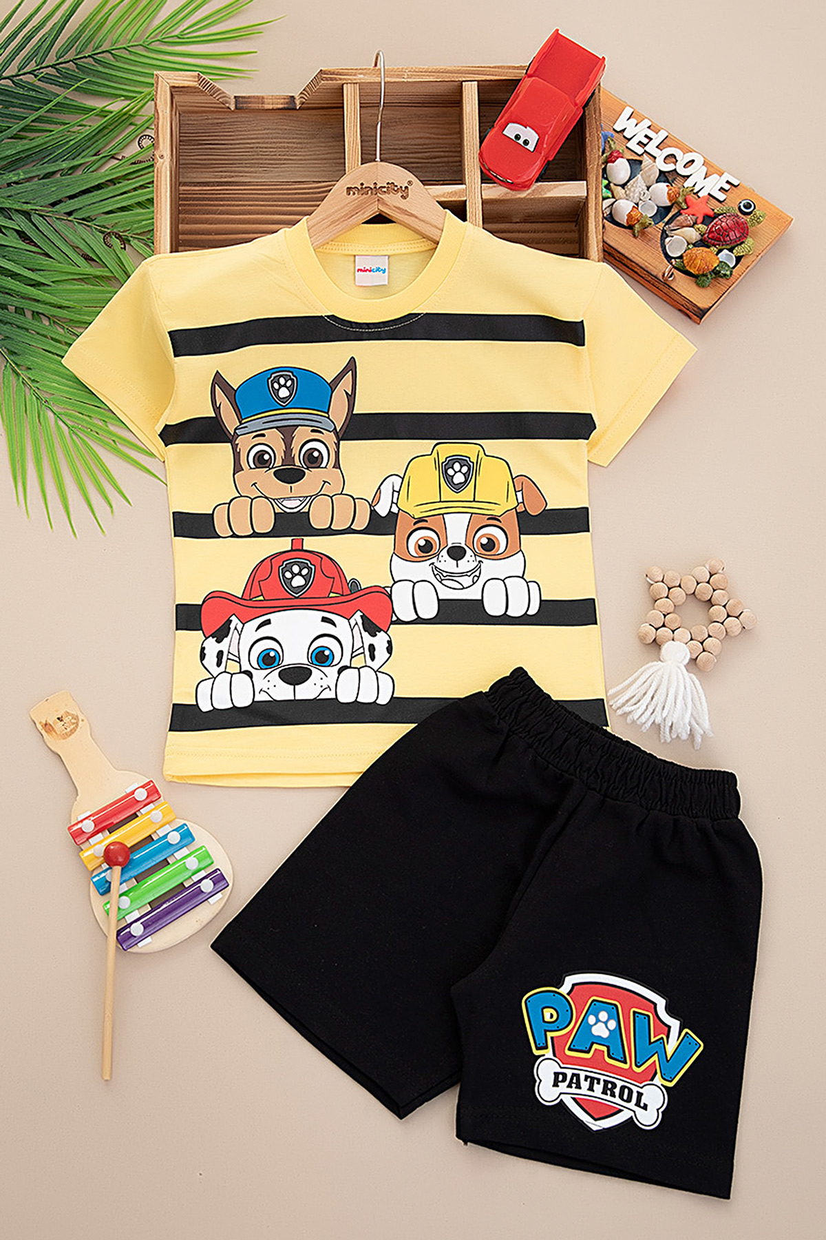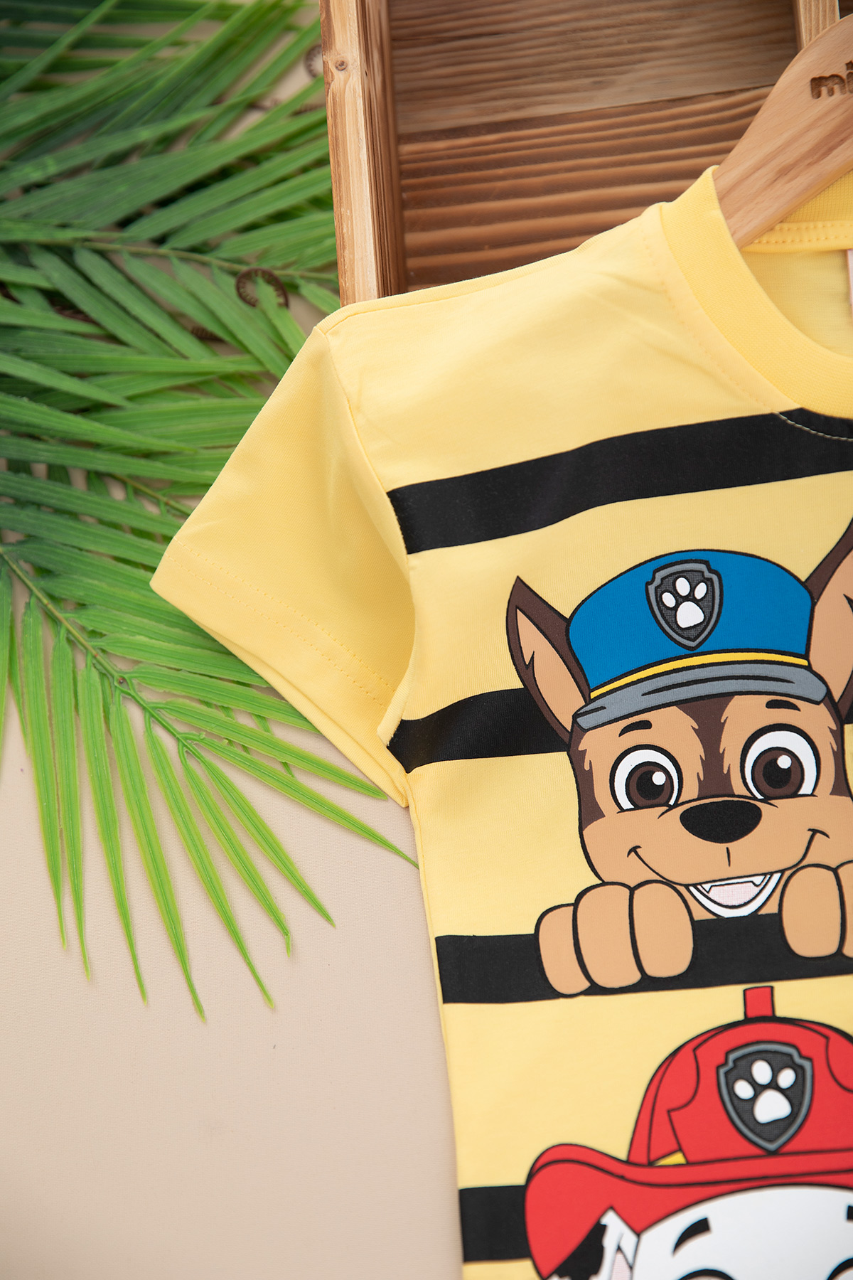 Erkek Çocuk Çizgili Paw Patrol Baskılı Şortlu Takım (4-10 Yaş)