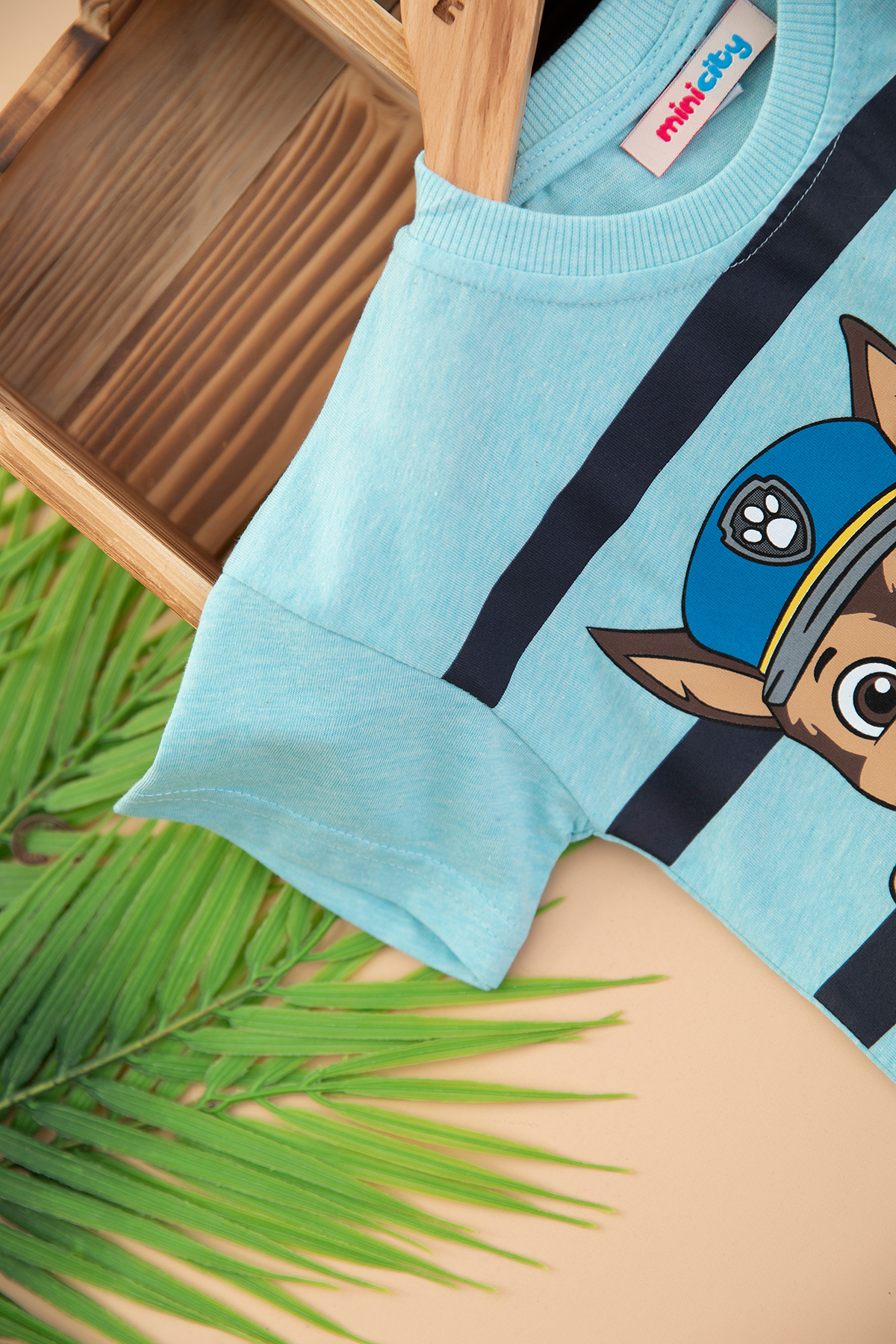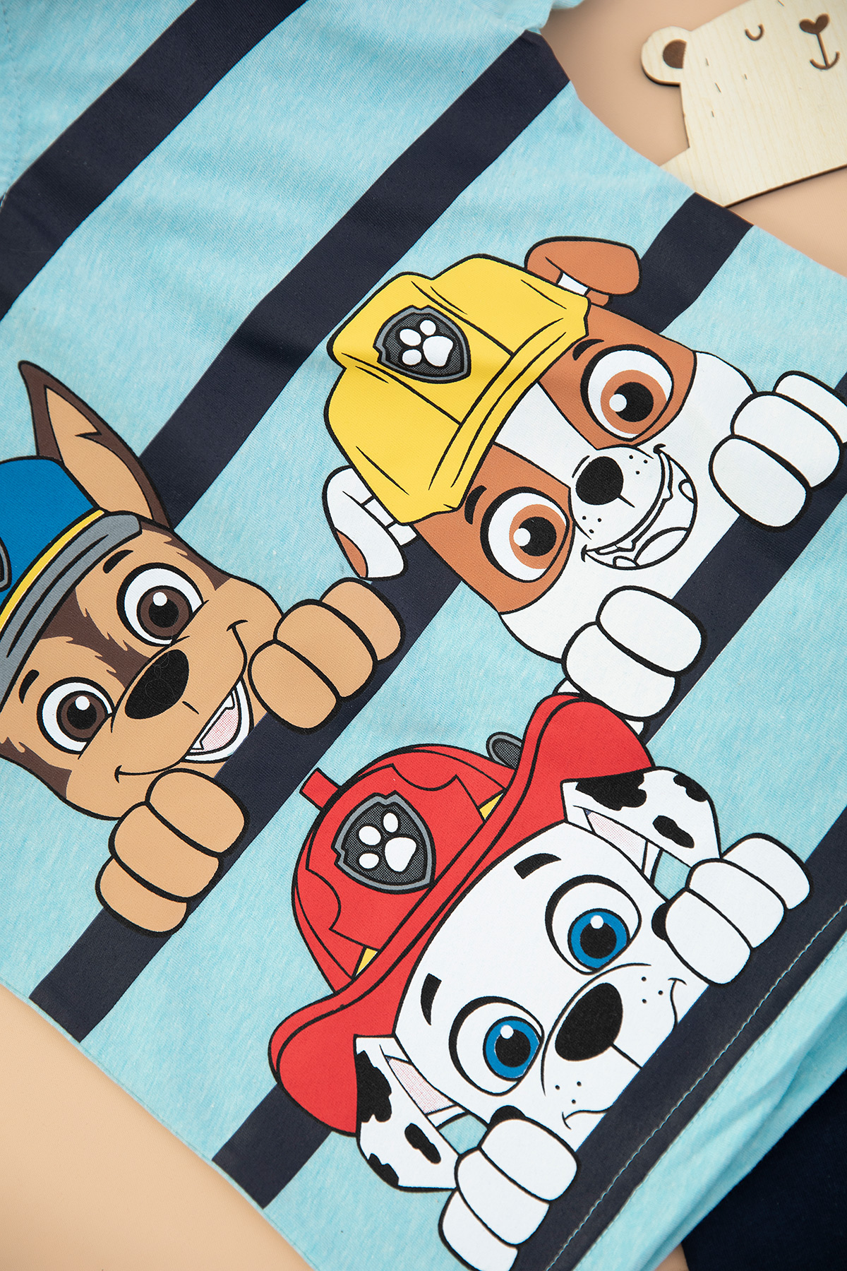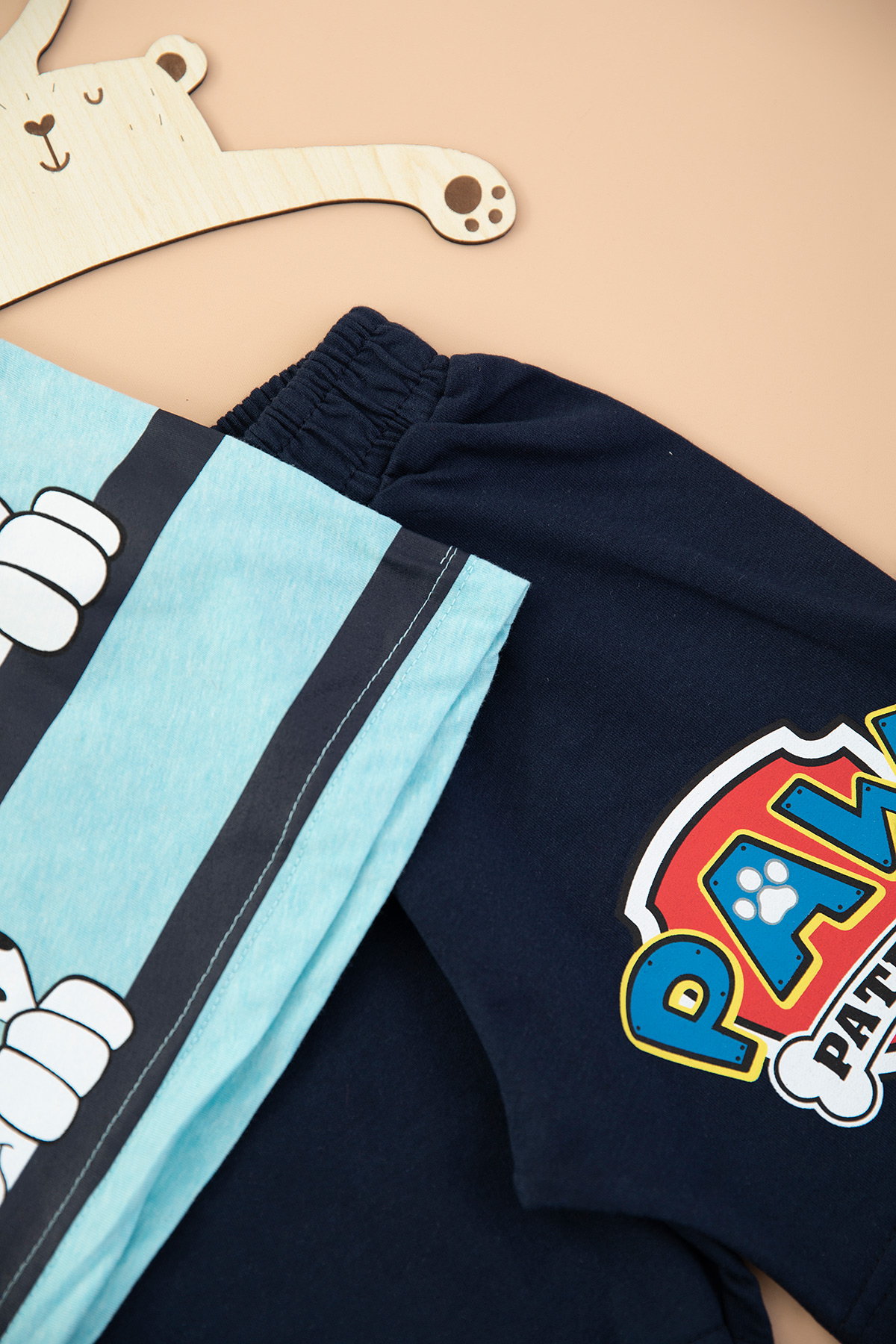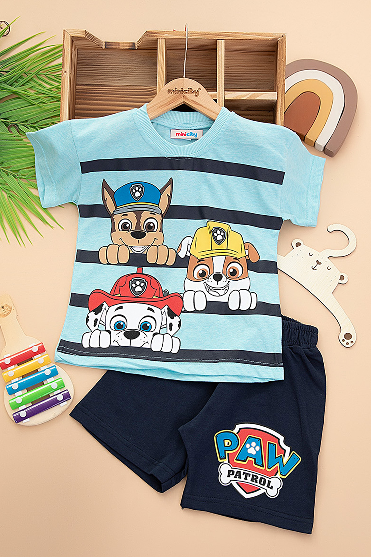 Erkek Çocuk Çizgili Paw Patrol Baskılı Şortlu Takım (4-10 Yaş)